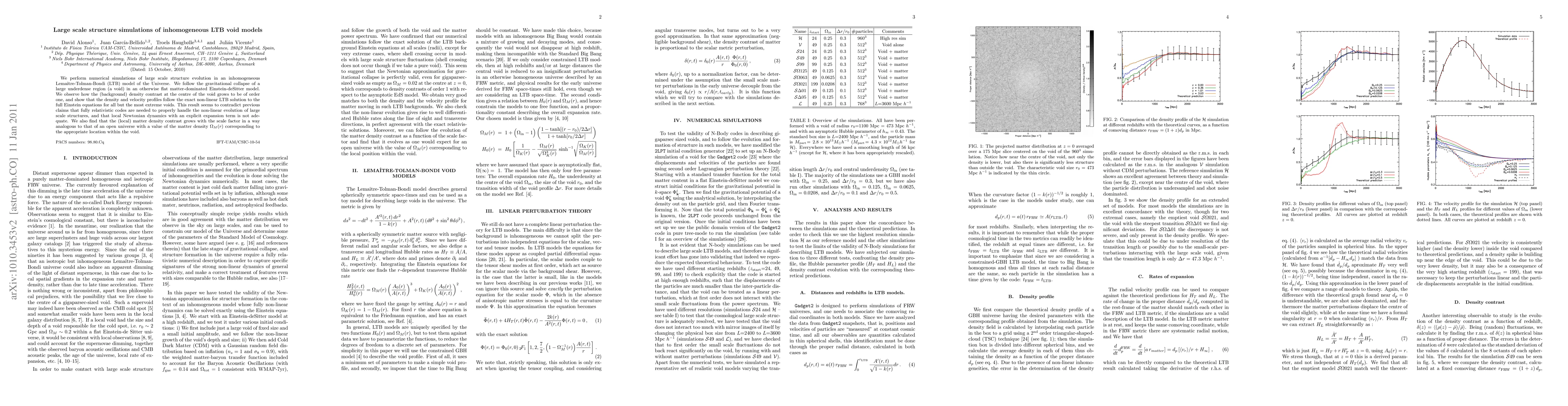 Numerical simulations of an inhomogeneous LTB void model show that density contrast at its center grows to one order, with profiles following the non-linear LTB solution, contradicting previous claims about handling large scale structures.