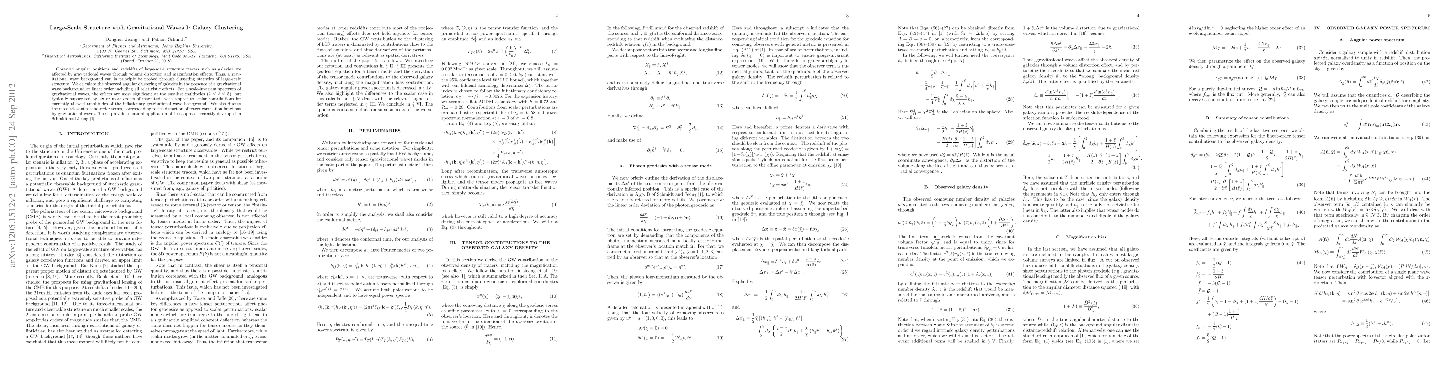 The research calculates the observed angular clustering of galaxies in the presence of a gravitational wave background at linear order, including all relativistic effects. It considers scale-invariant gravitational wave spectra and discusses second-order terms for tracer correlation function distortions.