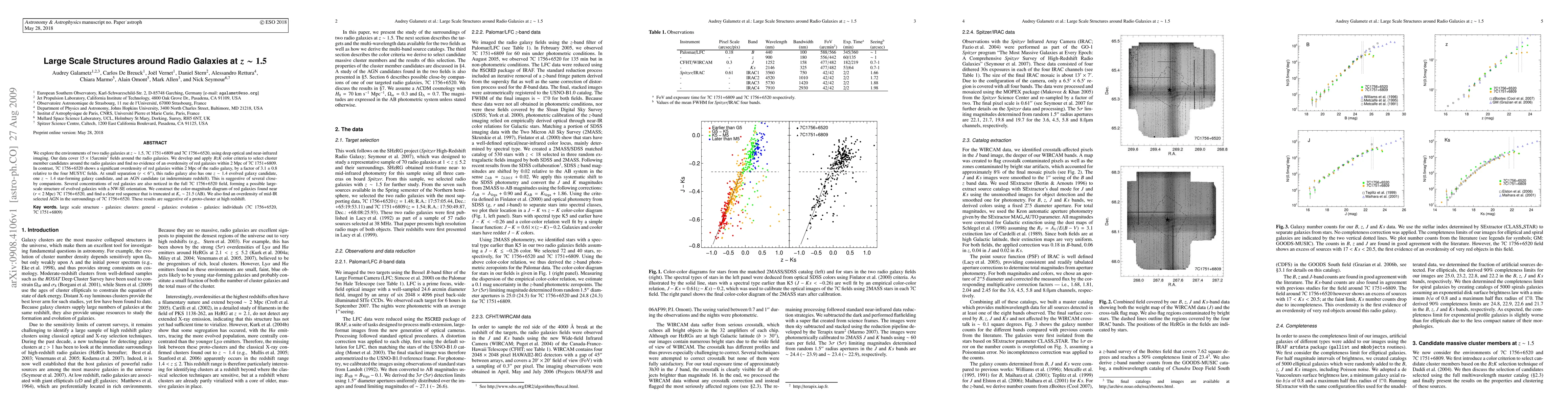 We explore the environments of two radio galaxies at z~1.5, 7C1751+6809 and 7C1756+6520, using deep optical and near-infrared imaging. Our data cover 15'x15' fields around the radio galaxies. We develop and apply BzK color criteria to select cluster member candidates around the radio galaxies and find no evidence of an overdensity of red galaxies within 2Mpc of 7C1751+6809. In contrast, 7C1756+6520 shows a significant overdensity of red galaxies within 2Mpc of the radio galaxy, by a factor of 3.1 +/- 0.8 relative to the four MUSYC fields. At small separation (r<6''), this radio galaxy also has one z~1.4 evolved galaxy candidate, one z~1.4 star-forming galaxy candidate, and an AGN candidate (at indeterminate redshift). This is suggestive of several close-by companions. Several concentrations of red galaxies are also noticed in the full 7C1756+6520 field, forming a possible large-scale structure of evolved galaxies with a NW-SE orientation. We construct the color-magnitude diagram of red galaxies found near (r<2Mpc) 7C1756+6520, and find a clear red sequence that is truncated at Ks~21.5 (AB). We also find an overdensity of mid-IR selected AGN in the surroundings of 7C1756+6520. These results are suggestive of a proto-cluster at high redshift.