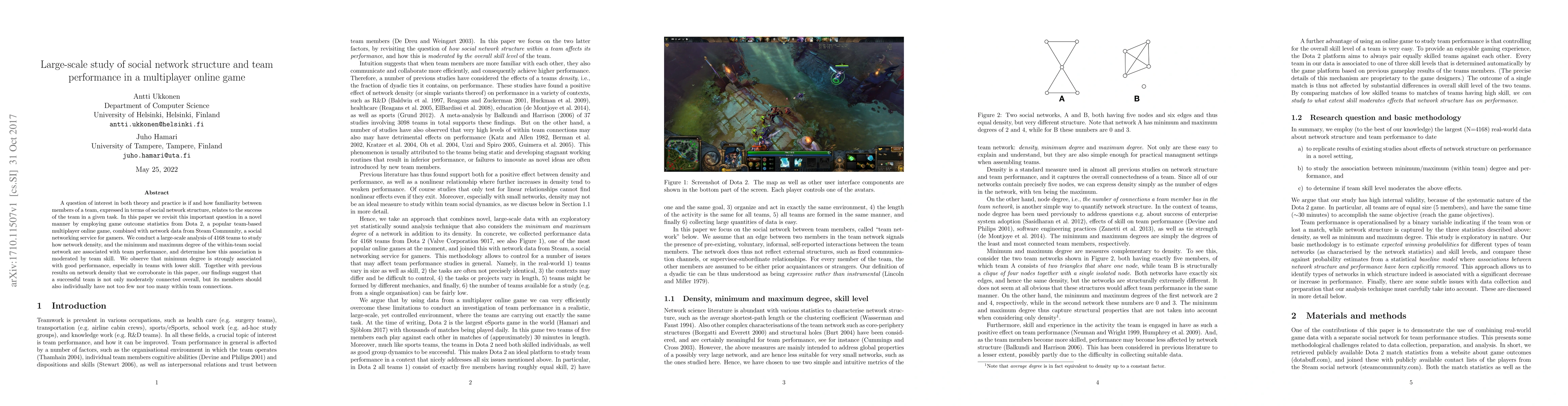 This study investigates the relationship between social network structure within teams and their performance in Dota 2, finding that teams with a higher minimum degree tend to perform better, especially those with lower skill levels. The research corroborates the importance of moderate network density and individual connection balance for team success.