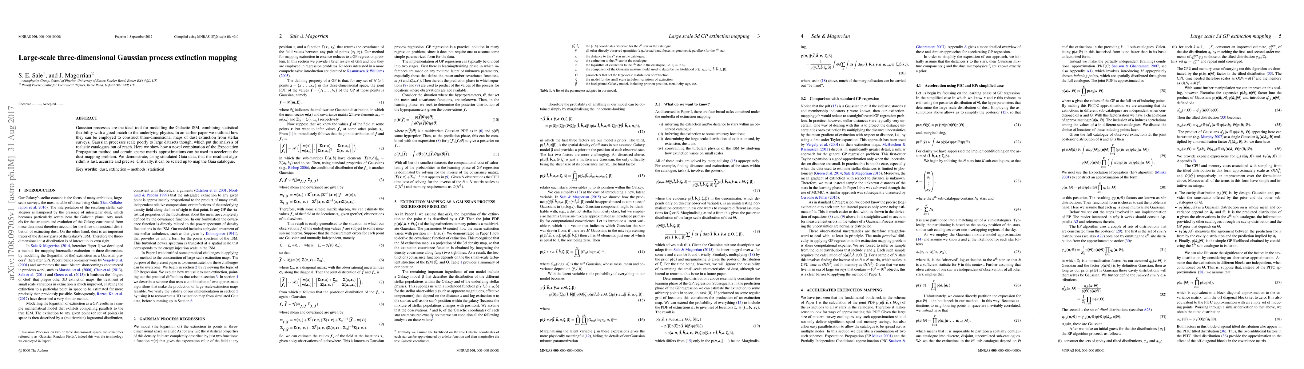 Gaussian processes are the ideal tool for modelling the Galactic ISM, combining statistical flexibility with a good match to the underlying physics. In an earlier paper we outlined how they can be employed to construct three-dimensional maps of dust extinction from stellar surveys. Gaussian processes scale poorly to large datasets though, which put the analysis of realistic catalogues out of reach. Here we show how a novel combination of the Expectation Propagation method and certain sparse matrix approximations can be used to accelerate the dust mapping problem. We demonstrate, using simulated Gaia data, that the resultant algorithm is fast, accurate and precise. Critically, it can be scaled up to map the Gaia catalogue.