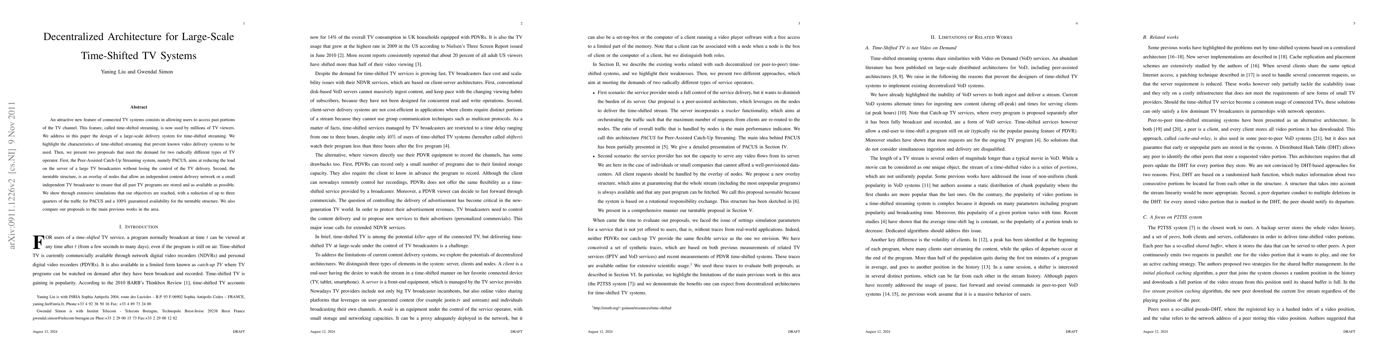 An attractive new feature of connected TV systems consists in allowing users to access past portions of the TV channel. This feature, called time-shifted streaming, is now used by millions of TV viewers. We address in this paper the design of a large-scale delivery system for time-shifted streaming. We highlight the characteristics of time-shifted streaming that prevent known video delivery systems to be used. Then, we present two proposals that meet the demand for two radically different types of TV operator. First, the Peer-Assisted Catch-Up Streaming system, namely PACUS, aims at reducing the load on the server of a large TV broadcasters without losing the control of the TV delivery. Second, the turntable structure, is an overlay of nodes that allow an independent content delivery network or a small independent TV broadcaster to ensure that all past TV programs are stored and as available as possible. We show through extensive simulations that our objectives are reached, with a reduction of up to three quarters of the traffic for PACUS and a 100\% guaranteed availability for the turntable structure. We also compare our proposals to the main previous works in the area.