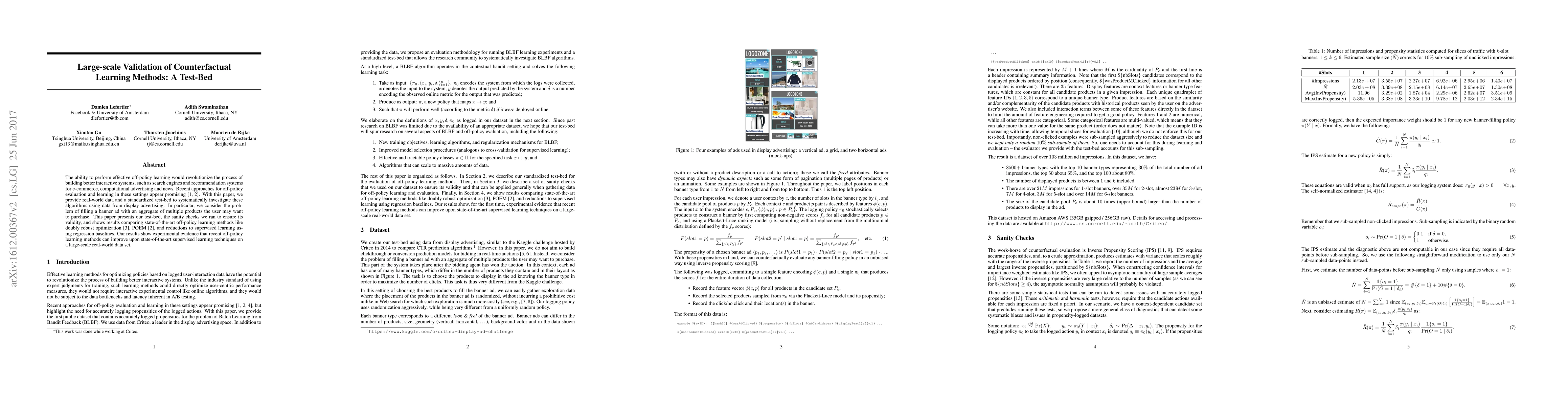 A new test-bed for evaluating off-policy learning methods improves upon state-of-the-art supervised learning techniques on a large-scale display advertising dataset. The findings show that recent approaches can outperform traditional supervised methods in interactive system development.