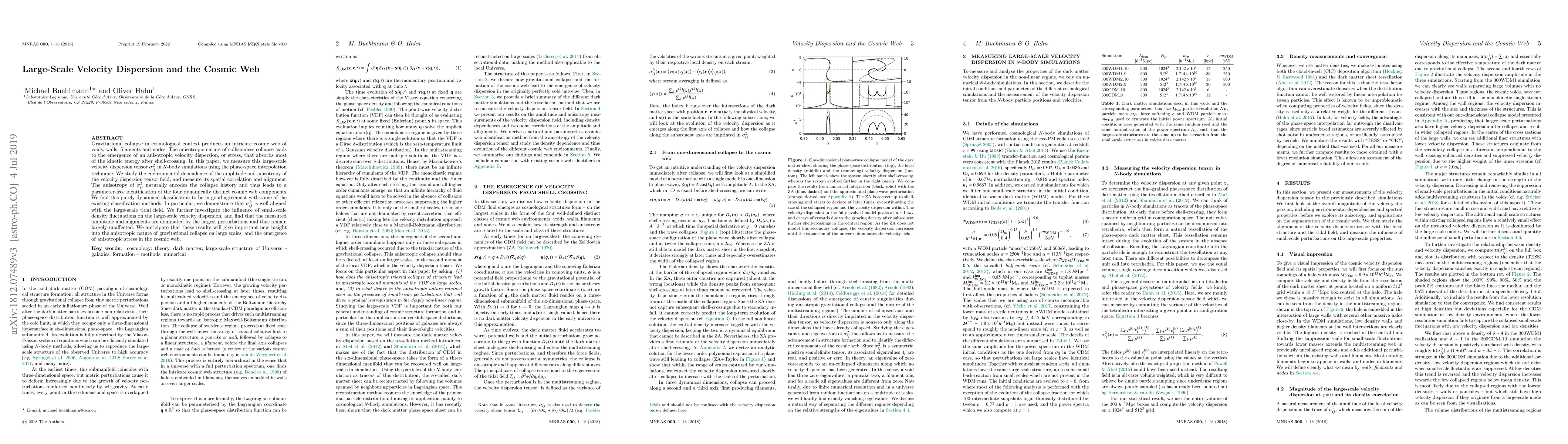Gravitational collapse in cosmological context produces an intricate cosmic web of voids, walls, filaments and nodes. The anisotropic nature of collisionless collapse leads to the emergence of an anisotropic velocity dispersion, or stress, that absorbs most of the kinetic energy after shell-crossing. In this paper, we measure this large-scale velocity dispersion tensor $\sigma^2_{ij}$ in $N$-body simulations using the phase-space interpolation technique. We study the environmental dependence of the amplitude and anisotropy of the velocity dispersion tensor field, and measure its spatial correlation and alignment. The anisotropy of $\sigma^2_{ij}$ naturally encodes the collapse history and thus leads to a parameter-free identification of the four dynamically distinct cosmic web components. We find this purely dynamical classification to be in good agreement with some of the existing classification methods. In particular, we demonstrate that $\sigma^2_{ij}$ is well aligned with the large-scale tidal field. We further investigate the influence of small scale density fluctuations on the large scale velocity dispersion, and find that the measured amplitude and alignments are dominated by the largest perturbations and thus remain largely unaffected. We anticipate that these results will give important new insight into the anisotropic nature of gravitational collapse on large scales, and the emergence of anisotropic stress in the cosmic web.