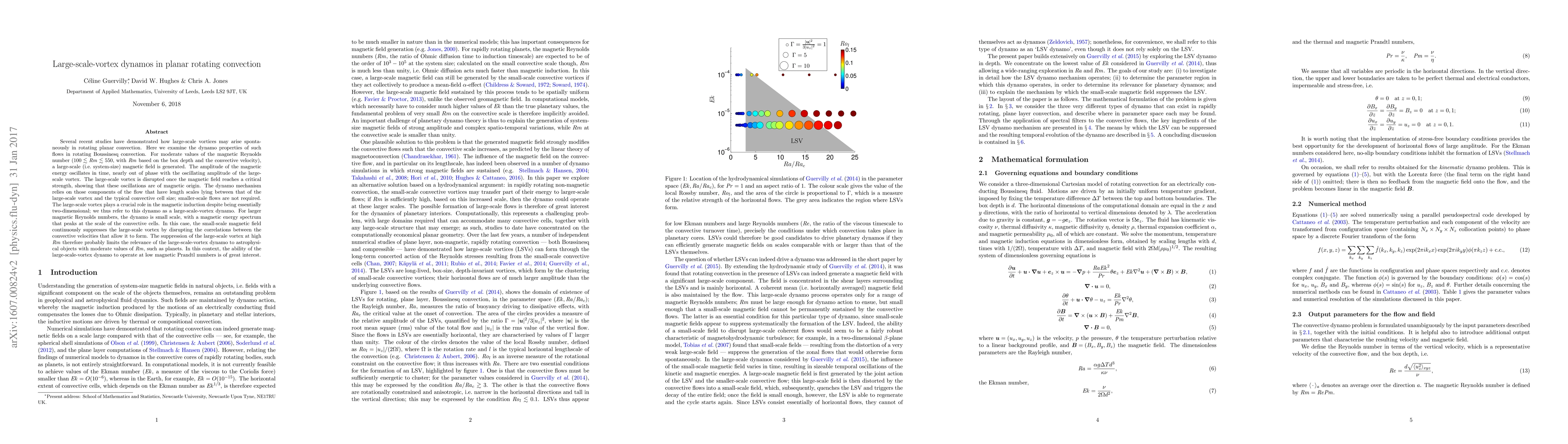 Researchers found that large-scale vortices in rotating convection can generate a magnetic field, but this effect is limited to moderate values of the magnetic Reynolds number; for higher $Rm$, the dynamo becomes small scale.