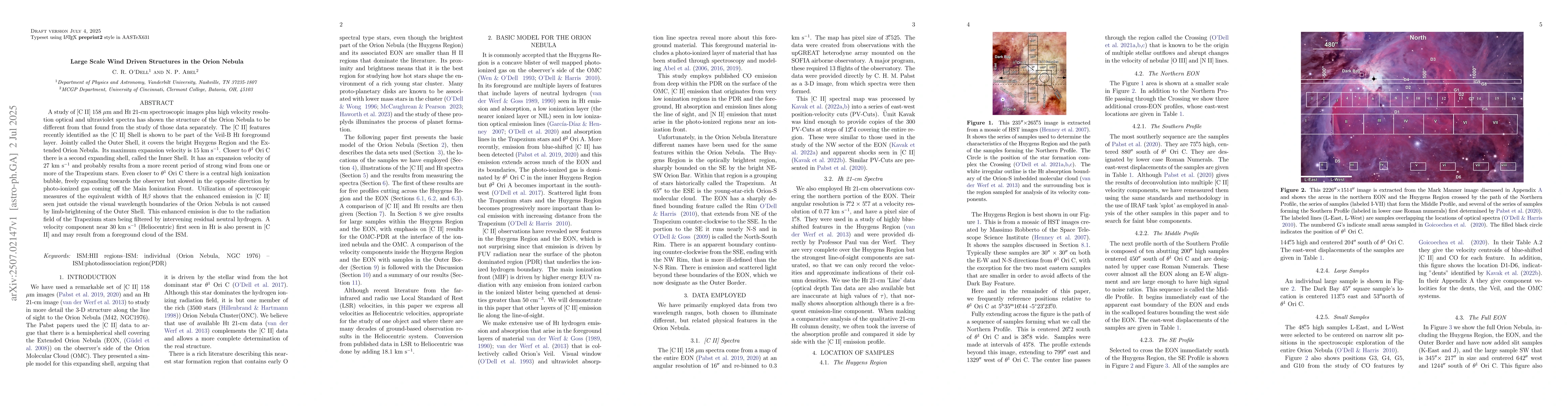 A study of [C II] 158 micron and HI 21-cm spectroscopic images plus high velocity resolution optical and ultraviolet spectra has shown the structure of the Orion Nebula to be different from that found from the study of those data separately. The [C II] features recently identified as the [C II] Shell is shown to be part of the Veil-B HI foreground layer. Jointly called the Outer Shell, it covers the bright Huygens Region and the Extended Orion Nebula. Its maximum expansion velocity is 15 km/s. Closer to ThetaOne OrionisC there is a second expanding shell, called the Inner Shell. It has an expansion velocity of 27 km/s and probably results from a more recent period of strong wind from one or more of the Trapezium stars. Even closer to ThetaOne OrionisC there is a central high ionization bubble, freely expanding towards the observer but slowed in the opposite direction by photo-ionized gas coming off the Main Ionization Front. Utilization of spectroscopic measures of the equivalent width of Hbeta shows that the enhanced emission in [C II] seen just outside the visual wavelength boundaries of the Orion Nebula is not caused by limb-brightening of the Outer Shell. This enhanced emission is due to the radiation field of the Trapezium stars being filtered by intervening residual neutral hydrogen. A velocity component near 30 km/s (Heliocentric) first seen in HI is also present in [C II] and may result from a foreground cloud of the ISM.