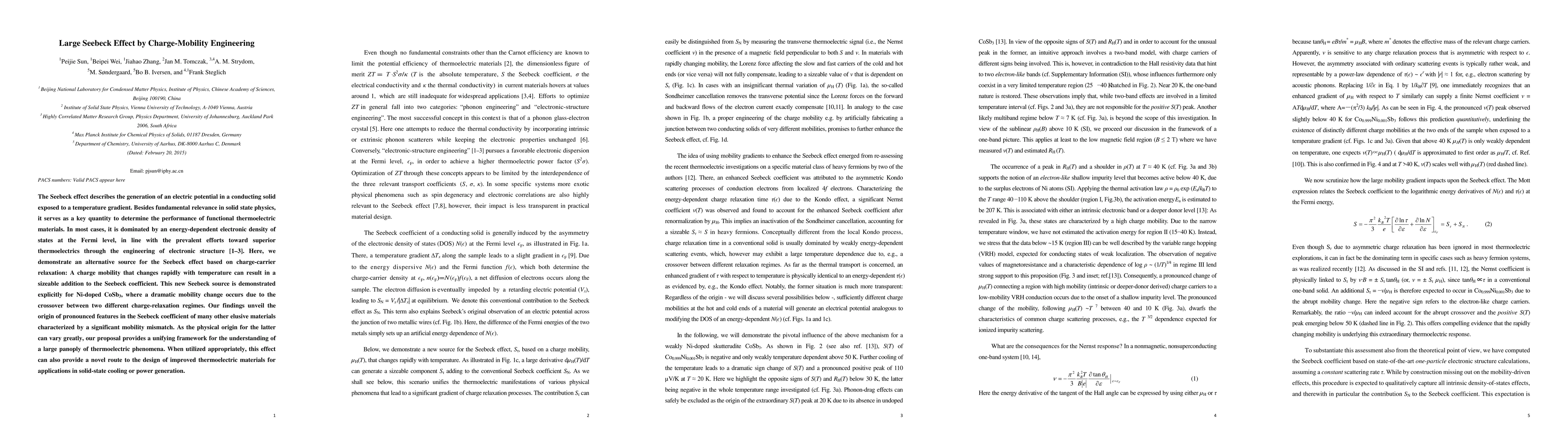 This paper demonstrates that a significant Seebeck effect can arise from rapid changes in charge mobility with temperature, rather than just electronic structure. This effect is shown in Ni-doped CoSb3, revealing a new understanding of thermoelectric phenomena and offering a novel approach to designing better thermoelectric materials.