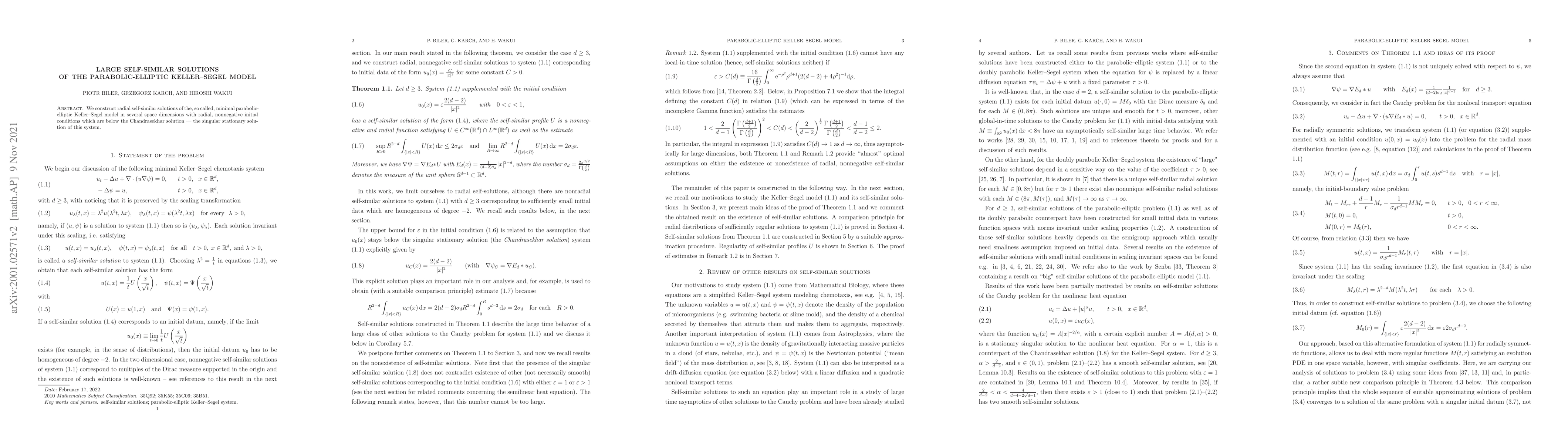 We construct radial self-similar solutions of the, so called, minimal parabolic-elliptic Keller--Segel model in several space dimensions with radial, nonnegative initial conditions with are below the Chandrasekhar solution -- the singular stationary solution of this system.