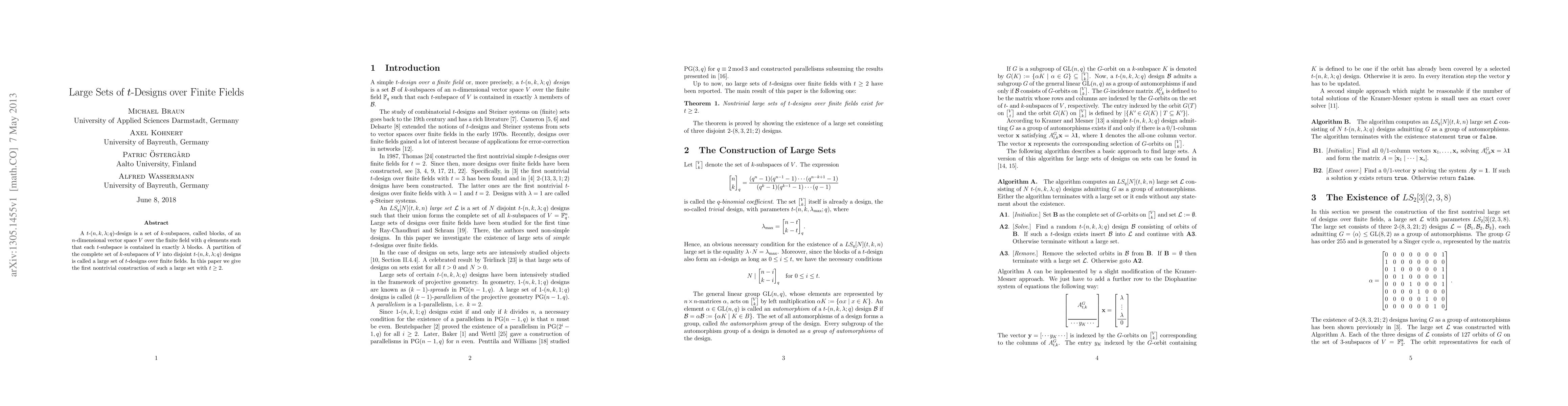This paper presents the first nontrivial construction of a large set of $t$-designs over finite fields for $t \geq 2$, addressing the partitioning of $k$-subspaces in an $n$-dimensional vector space over a finite field. The construction provides significant advancements in the understanding of combinatorial designs.