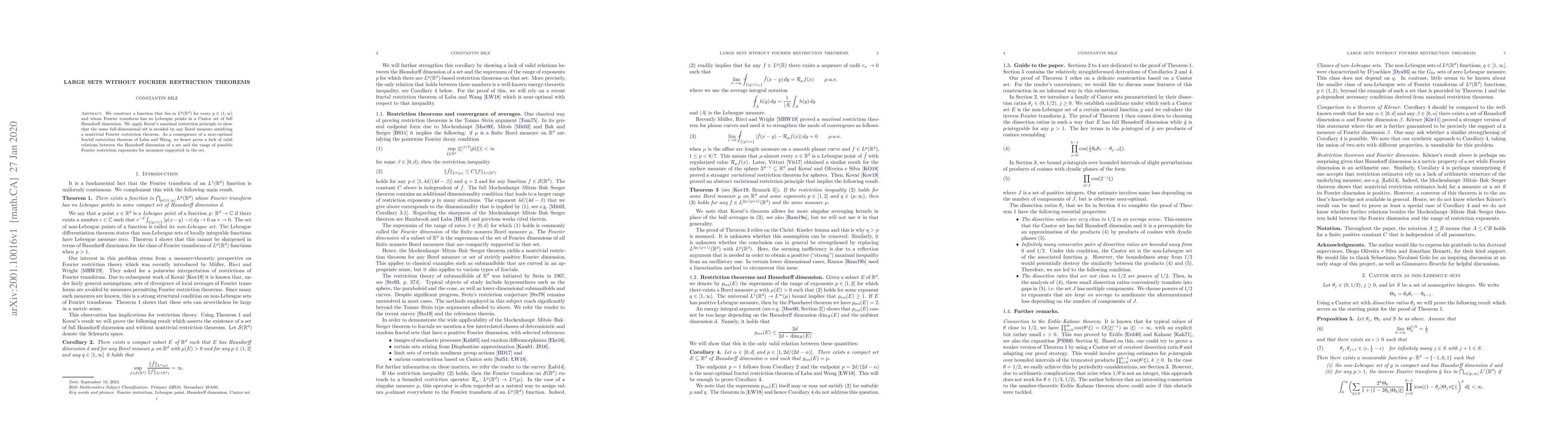 We construct a function that lies in $L^p(\mathbb{R}^d)$ for every $p \in (1,\infty]$ and whose Fourier transform has no Lebesgue points in a Cantor set of full Hausdorff dimension. We apply Kova\v{c}'s maximal restriction principle to show that the same full-dimensional set is avoided by any Borel measure satisfying a nontrivial Fourier restriction theorem. As a consequence of a near-optimal fractal restriction theorem of {\L}aba and Wang, we hence prove a lack of valid relations between the Hausdorff dimension of a set and the range of possible Fourier restriction exponents for measures supported in the set.
