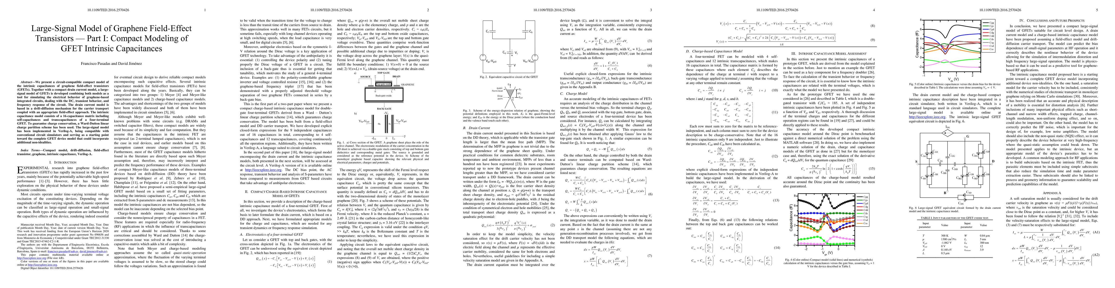 This paper introduces a compact model for the intrinsic capacitances of graphene field-effect transistors (GFETs) and integrates it into a large-signal model for simulating GFETs' behavior. The model includes a 16-capacitance matrix and is implemented in Verilog-A for compatibility with circuit simulators.