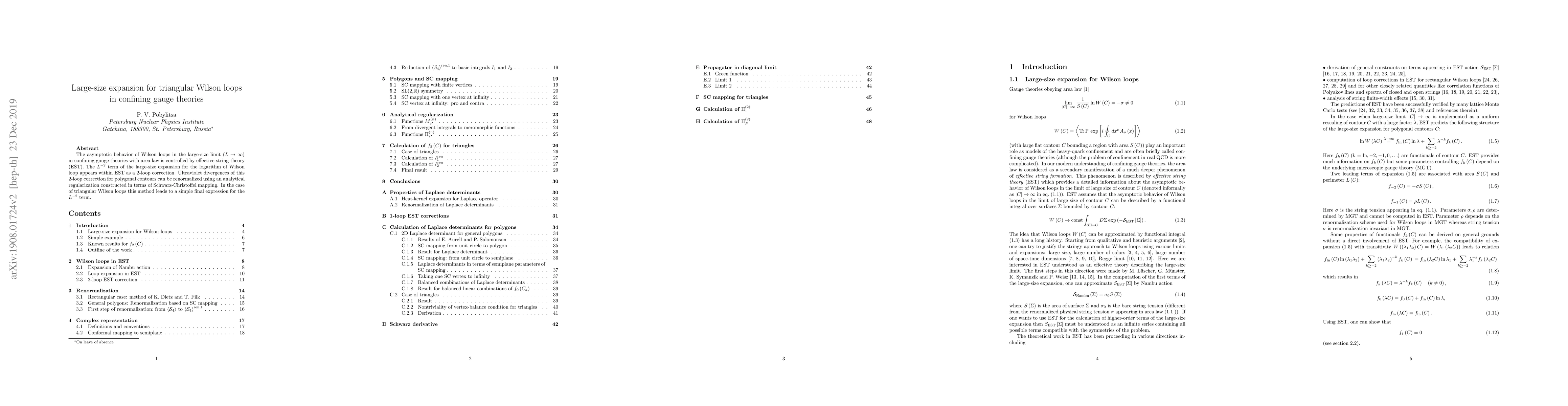 This paper investigates the large-size behavior of Wilson loops in confining gauge theories, showing that the $L^{-2}$ term in the expansion is governed by effective string theory. It employs Schwarz-Christoffel mapping for renormalization and derives a simple expression for the $L^{-2}$ term in triangular Wilson loops.