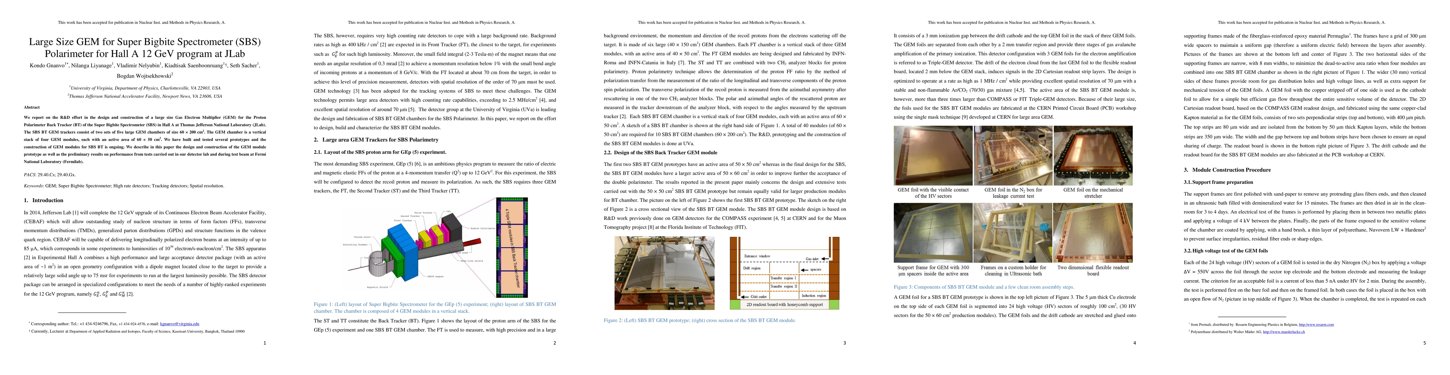 Researchers developed a large Gas Electron Multiplier (GEM) for the Super Bigbite Spectrometer at JLab, improving proton polarimeter performance, and tested its performance in a lab and test beam.