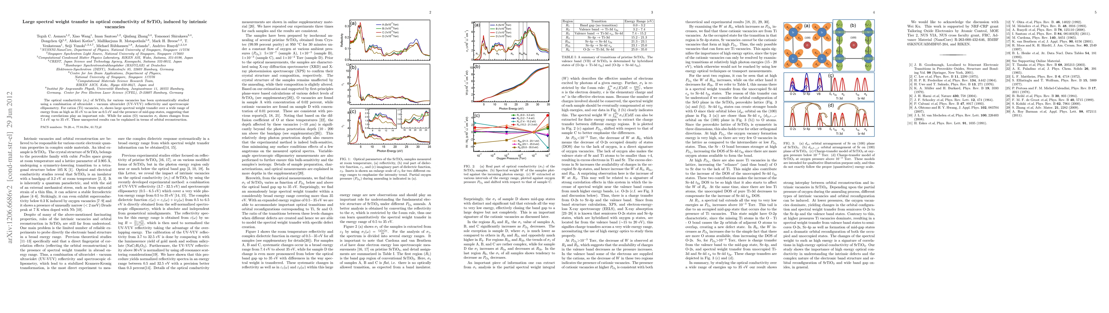 This study investigates the optical conductivity of SrTiO$_3$ with intrinsic vacancies, revealing significant spectral weight transfer due to cation vacancies, indicating strong correlations and mid-gap states. Anion vacancies show conductivity changes over a broader energy range, suggesting orbital reconstruction.