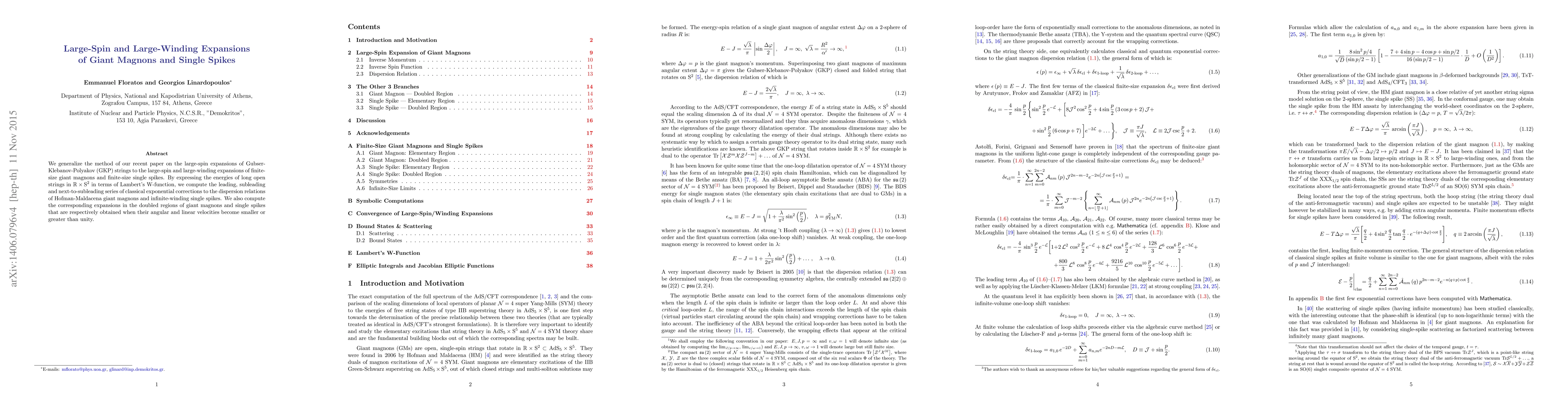 We generalize the method of our recent paper on the large-spin expansions of Gubser-Klebanov-Polyakov (GKP) strings to the large-spin and large-winding expansions of finite-size giant magnons and finite-size single spikes. By expressing the energies of long open strings in RxS2 in terms of Lambert's W-function, we compute the leading, subleading and next-to-subleading series of classical exponential corrections to the dispersion relations of Hofman-Maldacena giant magnons and infinite-winding single spikes. We also compute the corresponding expansions in the doubled regions of giant magnons and single spikes that are respectively obtained when their angular and linear velocities become smaller or greater than unity.