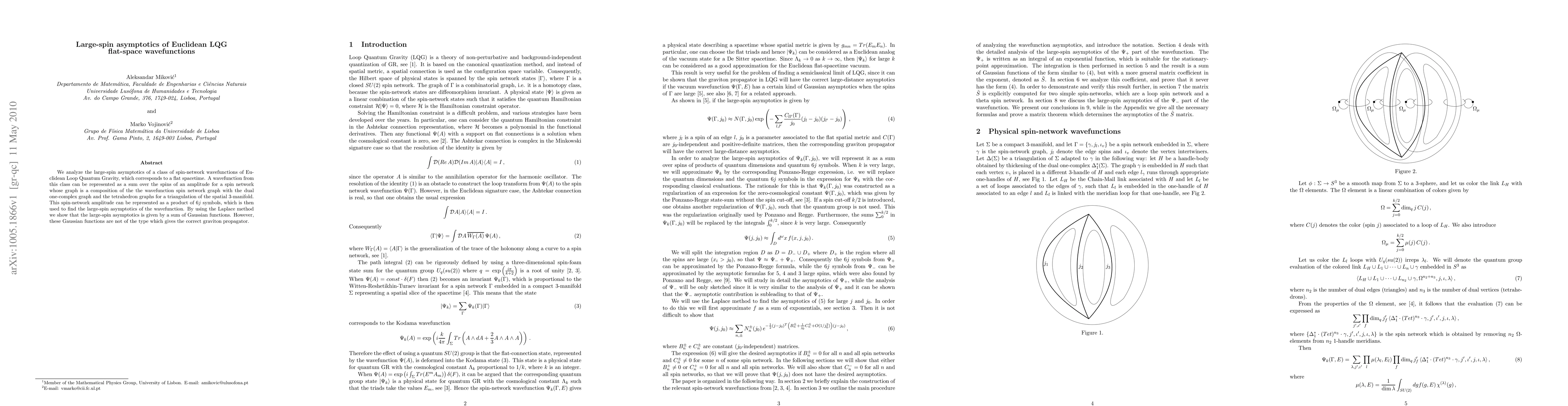 We analyze the large-spin asymptotics of a class of spin-network wavefunctions of Euclidean Loop Quantum Gravity, which corresponds to a flat spacetime. A wavefunction from this class can be represented as a sum over the spins of an amplitude for a spin network whose graph is a composition of the the wavefunction spin network graph with the dual one-complex graph and the tetrahedron graphs for a triangulation of the spatial 3-manifold. This spin-network amplitude can be represented as a product of 6j symbols, which is then used to find the large-spin asymptotics of the wavefunction. By using the Laplace method we show that the large-spin asymptotics is given by a sum of Gaussian functions. However, these Gaussian functions are not of the type which gives the correct graviton propagator.