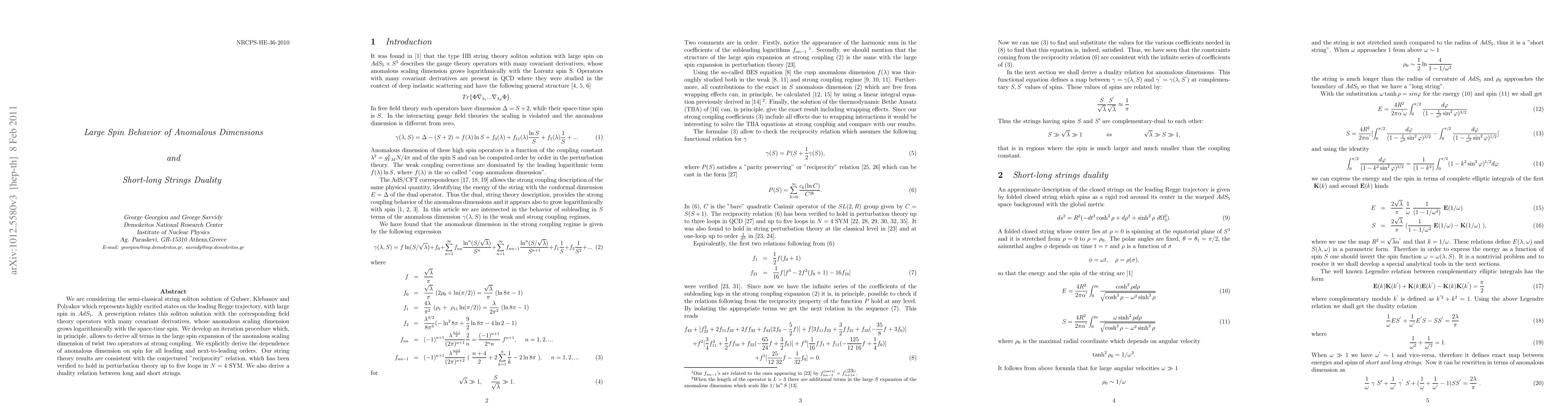 We are considering the semi-classical string soliton solution of Gubser, Klebanov and Polyakov which represents highly excited states on the leading Regge trajectory, with large spin in $AdS_5$. A prescription relates this soliton solution with the corresponding field theory operators with many covariant derivatives, whose anomalous scaling dimension grows logarithmically with the space-time spin. We explicitly derive the dependence of anomalous dimension on spin for all leading and next-to-leading orders at strong coupling. We develop an iteration procedure which, in principle, allows to derive all terms in the large spin expansion of the anomalous scaling dimension of twist two operators. Our string theory results are consistent with the conjectured "reciprocity" relation, which has been verified to hold in perturbation theory up to five loops in N=4 SYM. We also derive a duality relation between long and short strings.