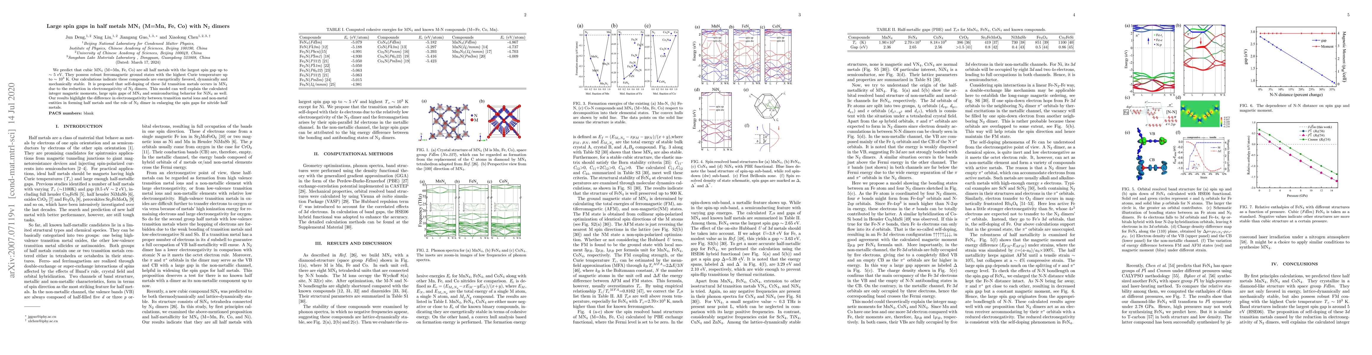 Researchers predict that certain metal nitride compounds with a specific structure exhibit large spin gaps and high Curie temperatures, making them promising candidates for new materials.