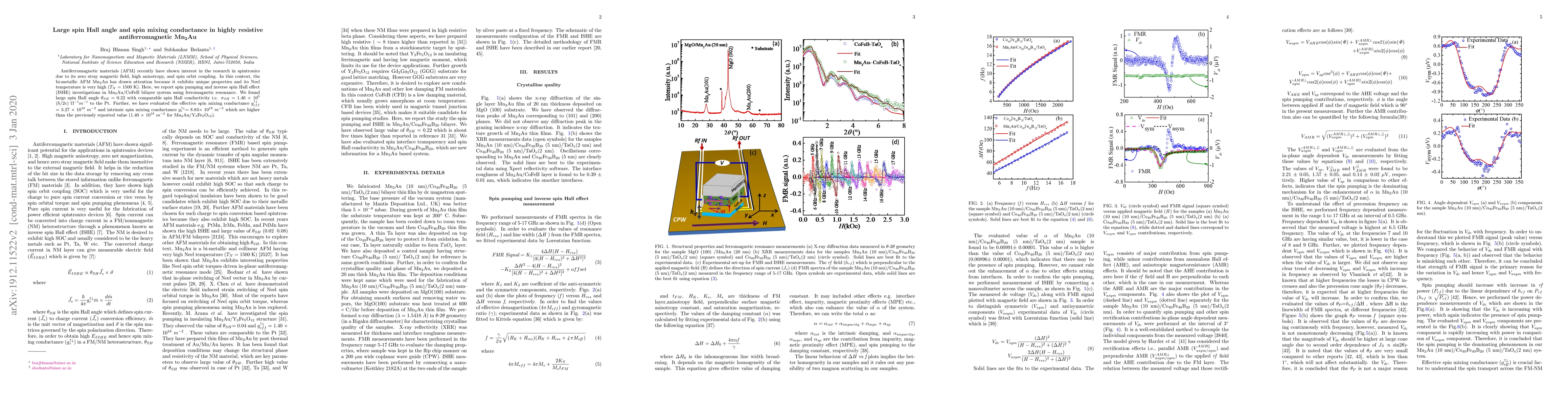Summary: This study investigates spin properties in the antiferromagnetic Mn2Au material, revealing a large spin Hall angle of 0.22 and significant spin mixing conductance, demonstrating its potential for advanced spintronics applications.