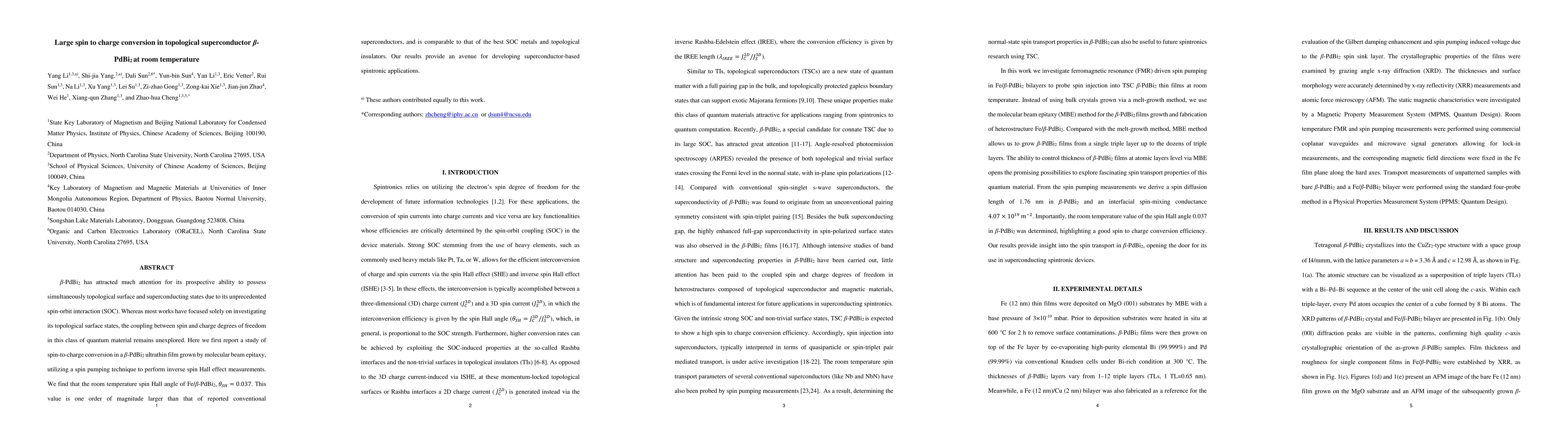 \b{eta}-PdBi2 has attracted much attention for its prospective ability to possess simultaneously topological surface and superconducting states due to its unprecedented spin-orbit interaction (SOC). Whereas most works have focused solely on investigating its topological surface states, the coupling between spin and charge degrees of freedom in this class of quantum material remains unexplored. Here we first report a study of spin-to-charge conversion in a \b{eta}-PdBi2 ultrathin film grown by molecular beam epitaxy, utilizing a spin pumping technique to perform inverse spin Hall effect measurements. We find that the room temperature spin Hall angle of Fe/\b{eta}-PdBi2, {\theta}_SH=0.037. This value is one order of magnitude larger than that of reported conventional superconductors, and is comparable to that of the best SOC metals and topological insulators. Our results provide an avenue for developing superconductor-based spintronic applications.