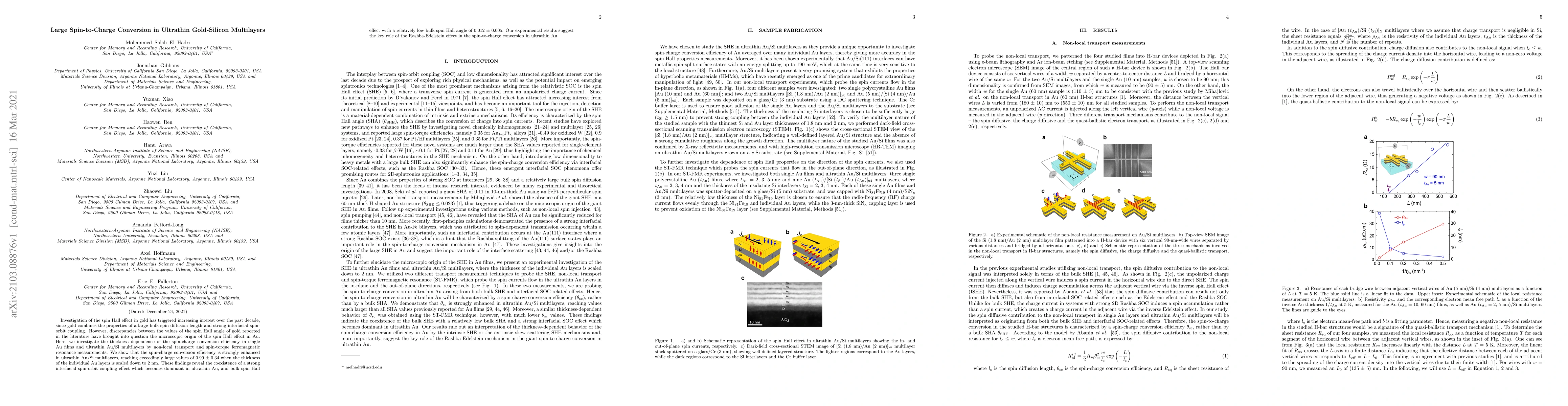 This study investigates the spin Hall effect in ultrathin gold films and Au/Si multilayers, demonstrating significantly enhanced spin-to-charge conversion efficiency in multilayers, reaching values up to 0.99, attributed to a dominant Rashba-Edelstein effect in very thin gold layers.