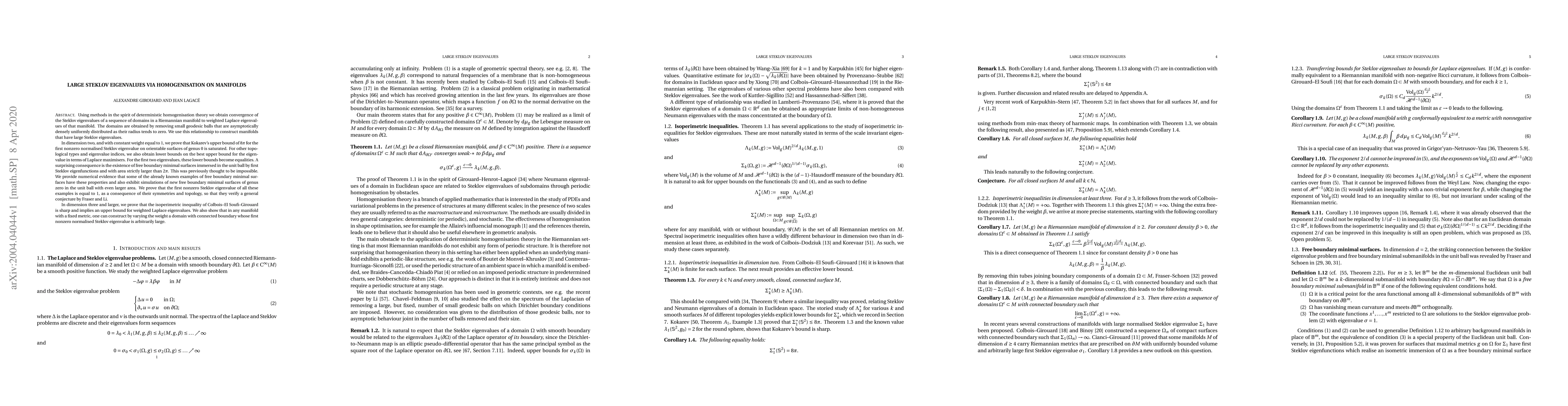 This paper uses homogenisation theory to study the convergence of Steklov eigenvalues in Riemannian manifolds, proving that these eigenvalues relate to weighted Laplace eigenvalues. It demonstrates that Kokarev's upper bound for the first nonzero normalised Steklov eigenvalue on genus 0 surfaces is achievable, revealing unexpected free boundary minimal surfaces in the unit ball with larger areas than previously thought.