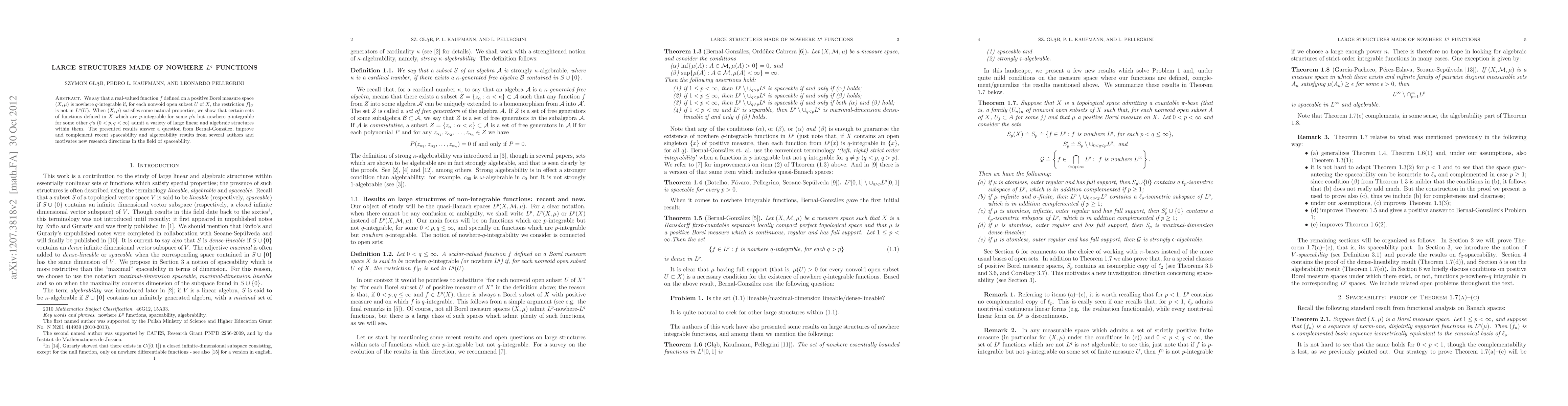 This paper explores functions defined on a positive Borel measure space that are $p$-integrable for some $p$ but nowhere $q$-integrable for other $q$. It demonstrates the existence of large linear and algebraic structures within these sets, answering a question from Bernal-Gonz\'alez and enhancing recent spaceability and algebrability research.