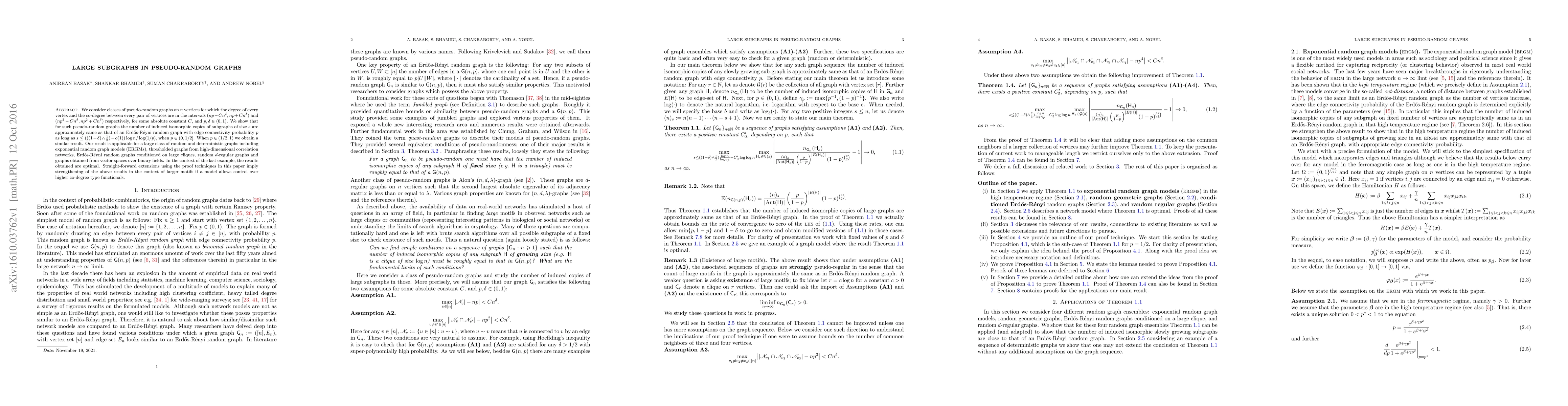 This paper investigates pseudo-random graphs where vertex degrees and co-degrees fall within specified intervals, showing that their induced subgraph counts closely match those of an Erdős-Rényi random graph, provided the subgraph size is sufficiently small relative to the logarithm of the number of vertices. The findings apply to various graph models, including ERGMs and random $d$-regular graphs.