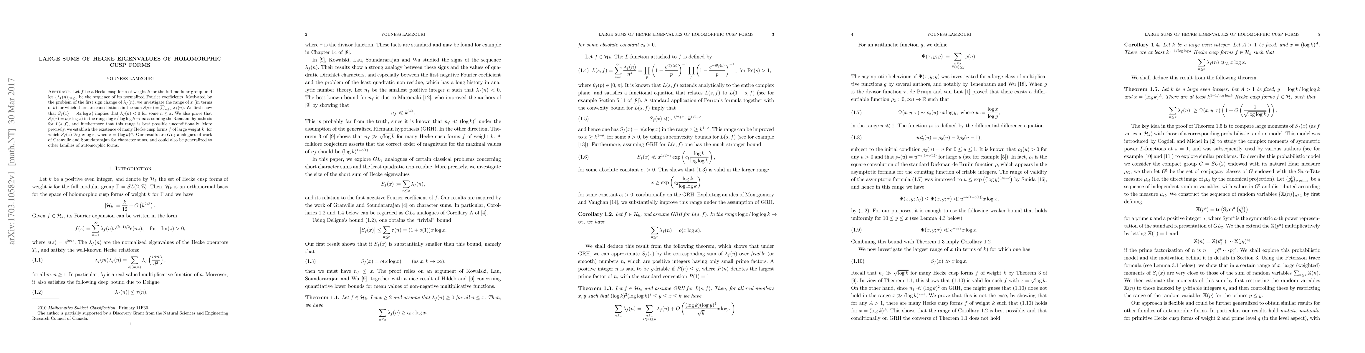 The paper investigates how often Hecke eigenvalues of holomorphic cusp forms cancel out in a sum, and finds that for large weights, these cancellations occur more frequently than previously thought.
