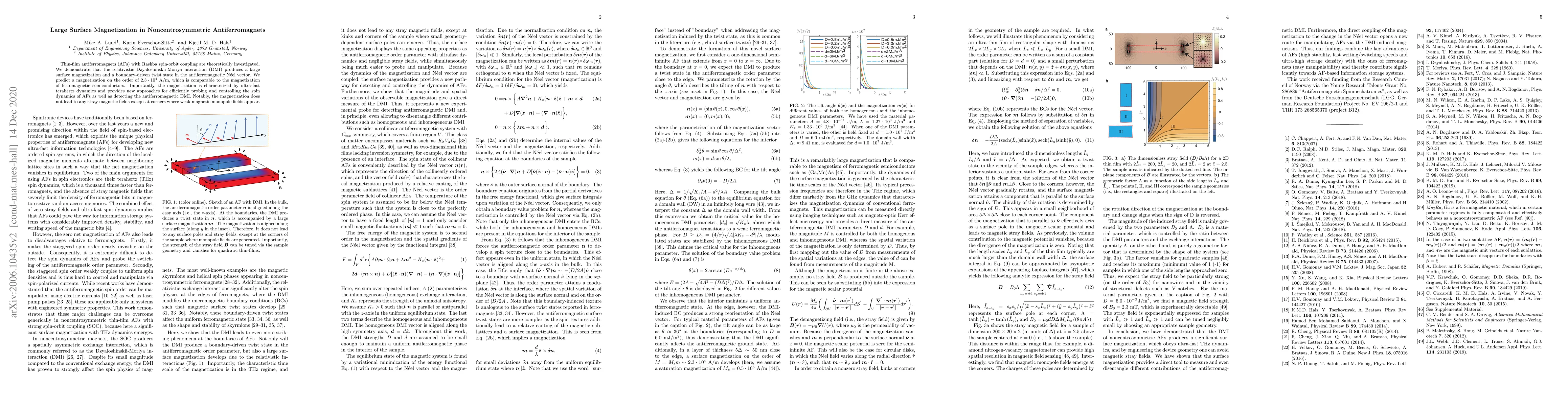 This paper investigates thin-film antiferromagnets with Rashba spin-orbit coupling, demonstrating that the Dzyaloshinskii-Moriya interaction generates a large surface magnetization comparable to ferromagnetic semiconductors, with ultra-fast terahertz dynamics and minimal stray magnetic fields.