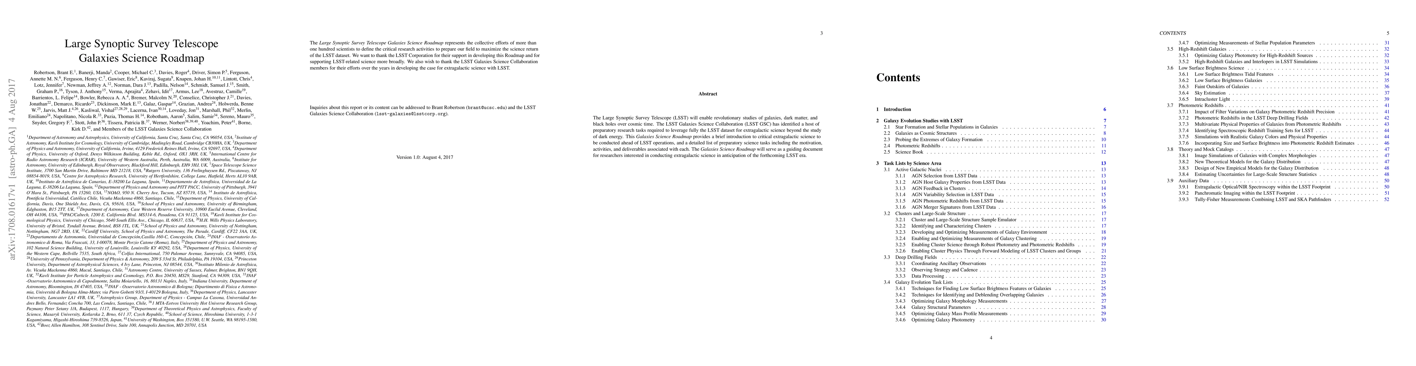 The Large Synoptic Survey Telescope (LSST) will revolutionize studies of galaxies, dark matter, and black holes. The LSST Galaxies Science Roadmap outlines preparatory research tasks and detailed science objectives to maximize the use of LSST data for extragalactic science, serving as a guide for researchers.