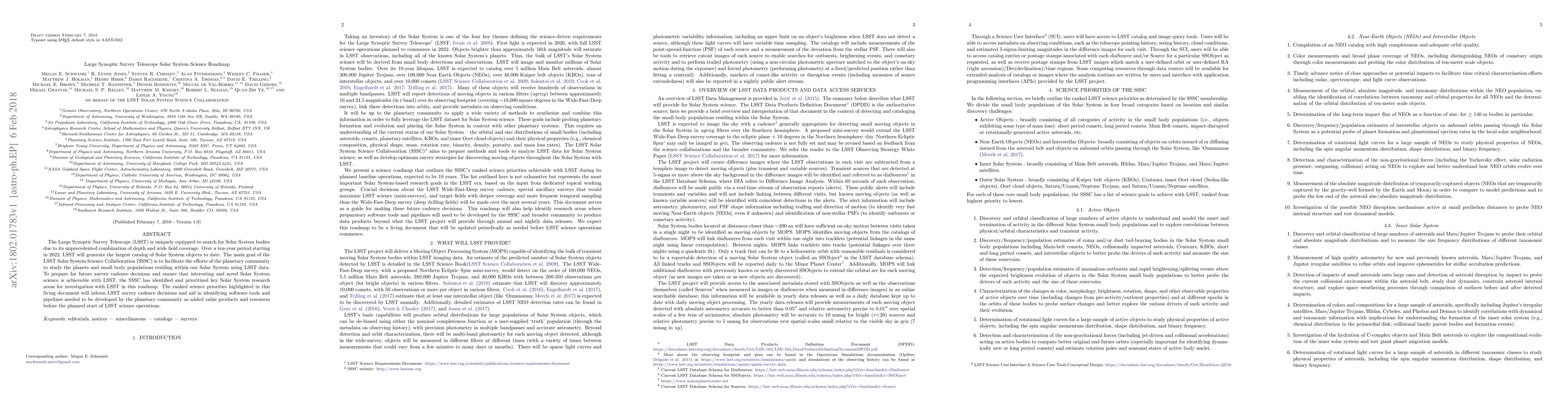 The Large Synoptic Survey Telescope (LSST) will create an extensive catalog of Solar System objects over a decade starting in 2022, and the LSST Solar System Science Collaboration aims to guide planetary science research using this data, prioritizing key research areas to inform survey decisions and necessary software development.