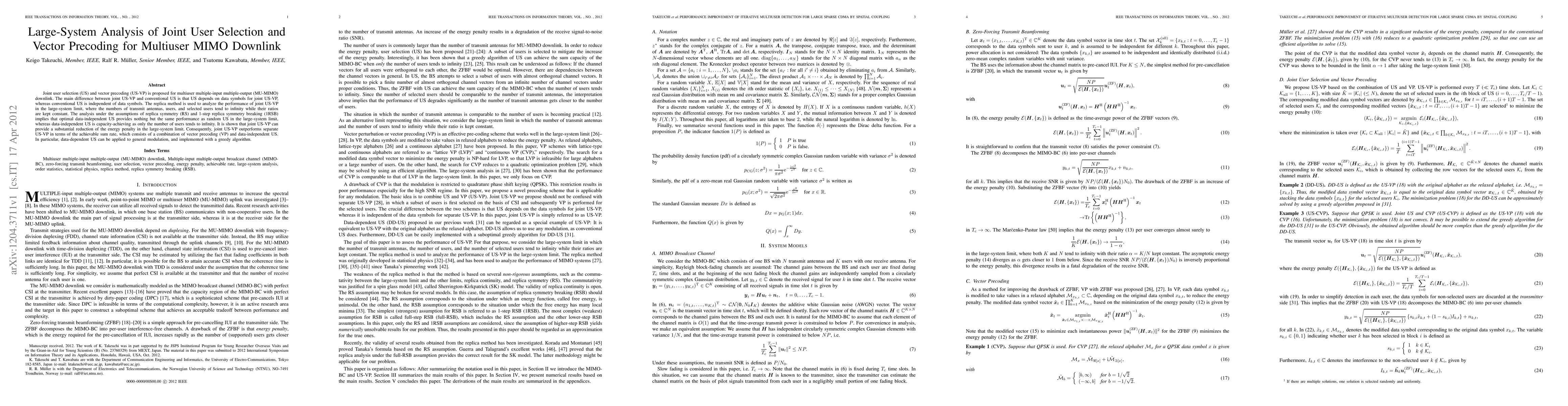 This paper proposes a joint user selection and vector precoding method for multiuser MIMO downlink, showing that data-dependent selection can significantly reduce energy penalty compared to data-independent methods. The replica method reveals that joint selection and vector precoding outperform separate methods in terms of achievable sum rate in large-system scenarios.
