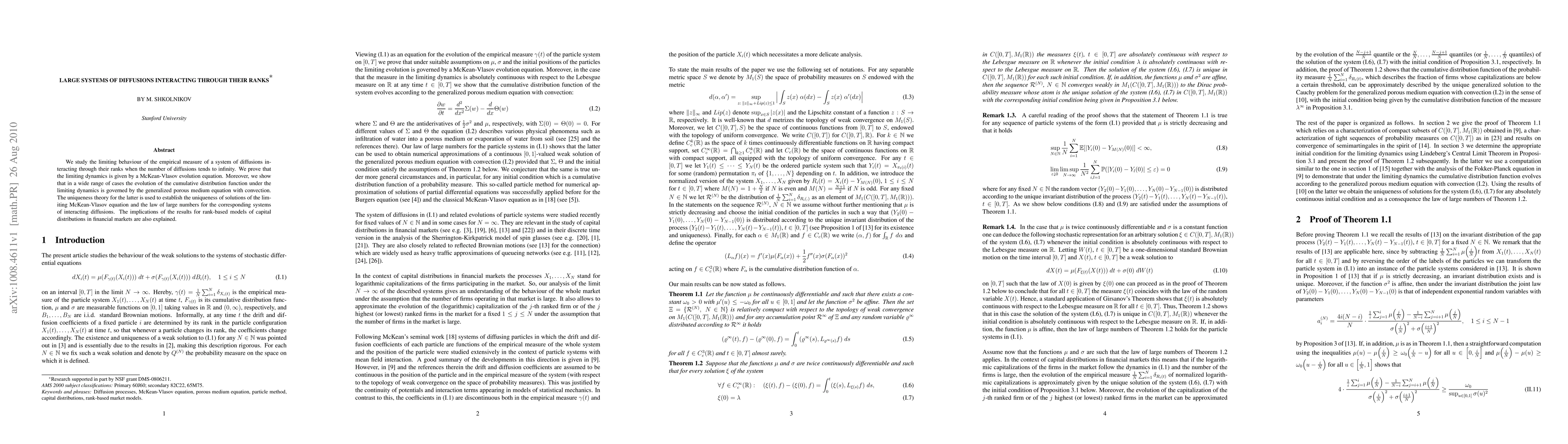 This paper investigates the limiting behavior of interacting diffusion systems as the number of particles grows, demonstrating that the dynamics converge to a McKean-Vlasov equation. It also shows that the cumulative distribution function evolves according to a generalized porous medium equation with convection, establishing the uniqueness of solutions and the law of large numbers for these systems.