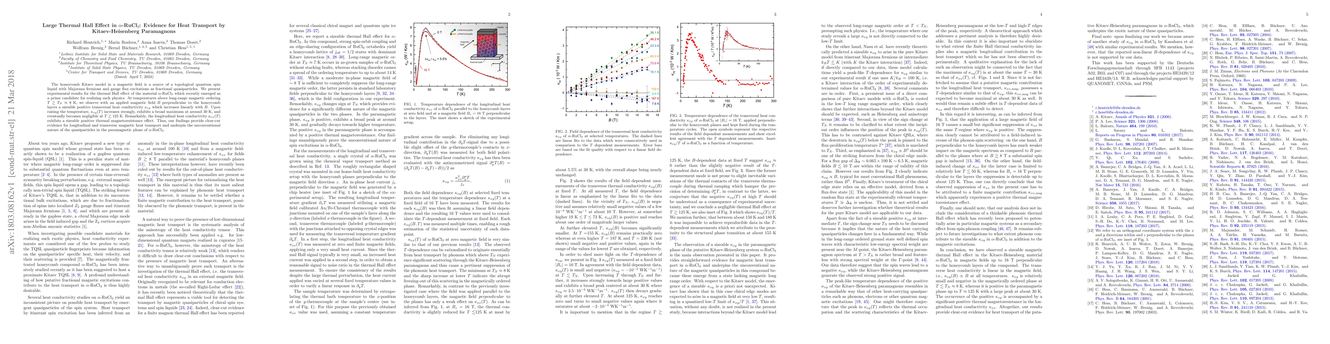 This paper reports a large thermal Hall effect in $\alpha$-RuCl$_{3}$, indicating heat transport by Kitaev-Heisenberg paramagnons. The observed transversal heat conductivity $\kappa_{xy}$ increases linearly with an applied magnetic field and peaks at around 30 K, supporting the unconventional nature of quasiparticles in the material's paramagnetic phase.