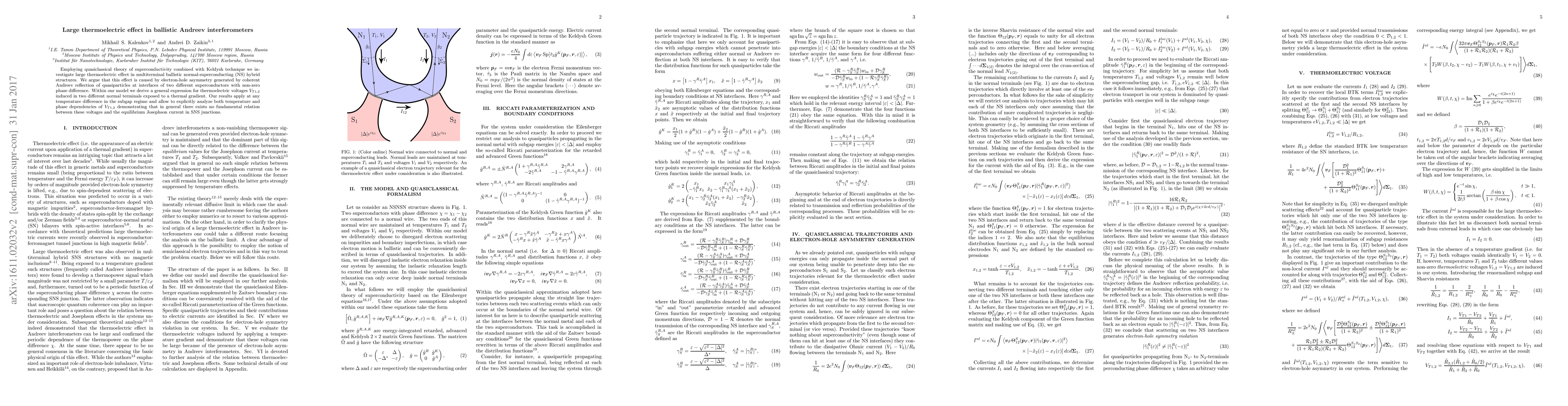 This research investigates the thermoelectric effect in multiterminal ballistic normal-superconducting hybrid structures, attributing it to electron-hole asymmetry from coherent Andreev reflections. It derives expressions for thermoelectric voltages induced by thermal gradients, showing no fundamental link to equilibrium Josephson current in SNS junctions.