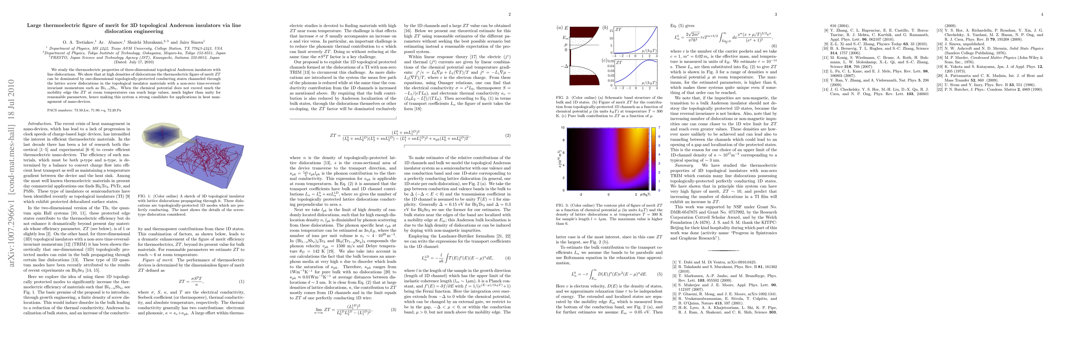 This paper investigates how line dislocation engineering in 3D topological Anderson insulators can significantly enhance the thermoelectric figure of merit (ZT) by utilizing one-dimensional topologically-protected conducting states. At high dislocation densities, ZT can reach values much greater than 1, making these materials promising for nano-device heat management applications.