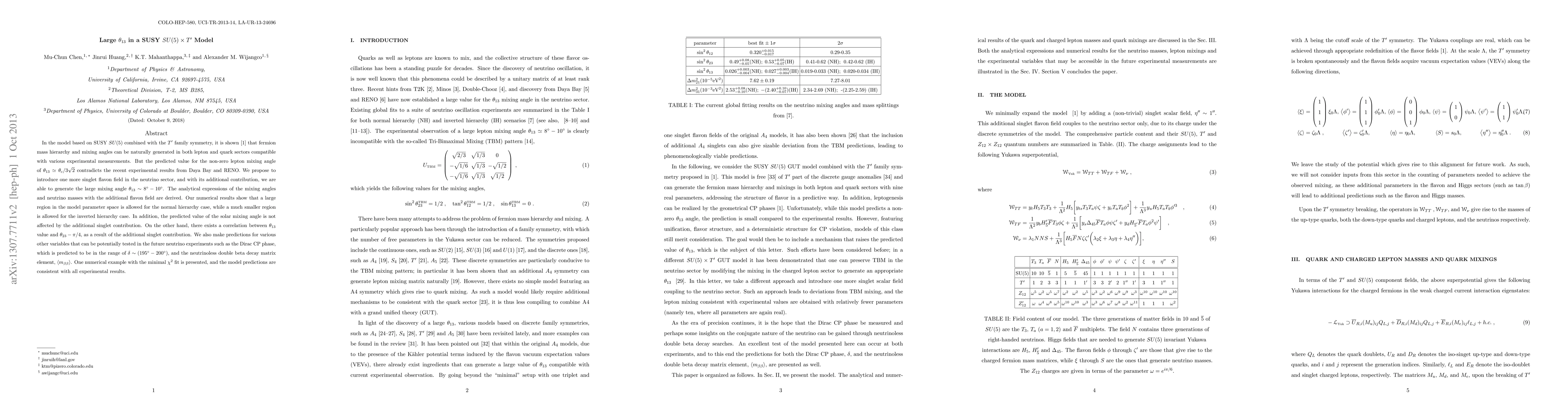lepton and quark sectors compatible with various experimental measurements. But