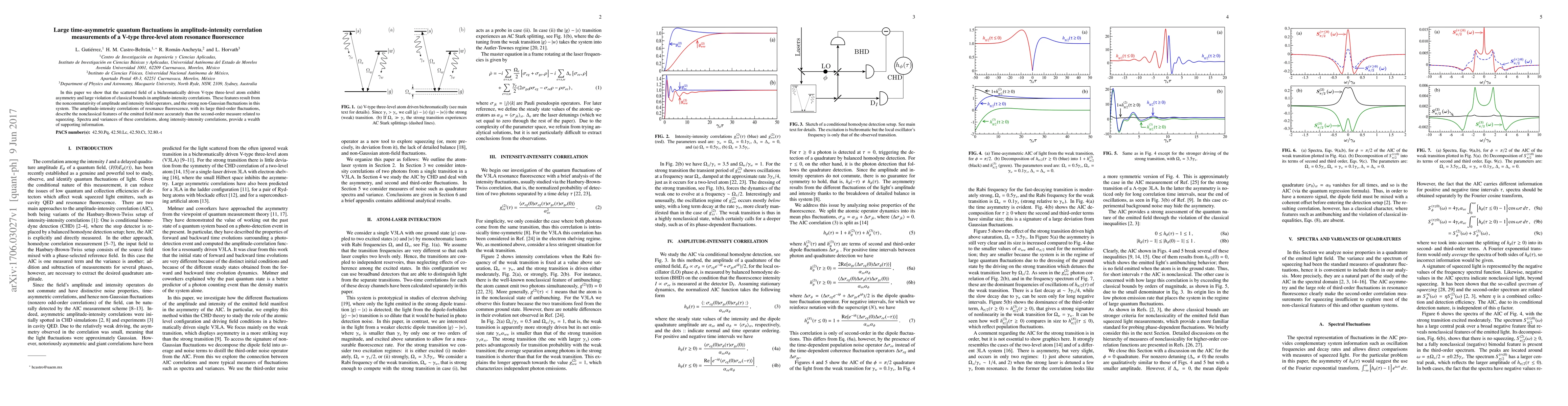In this paper we show that the scattered field of a bichromatically driven V-type three-level atom exhibit asymmetry and large violation of classical bounds in amplitude-intensity correlations. These features result from the noncommutativity of amplitude and intensity field operators, and the strong non-Gaussian fluctuations in this system. The amplitude-intensity correlations of resonance fluorescence, with its large third-order fluctuations, describe the nonclassical features of the emitted field more accurately than the second-order measure related to squeezing. Spectra and variances of these correlations, along intensity-intensity correlations, provide a wealth of supporting information.