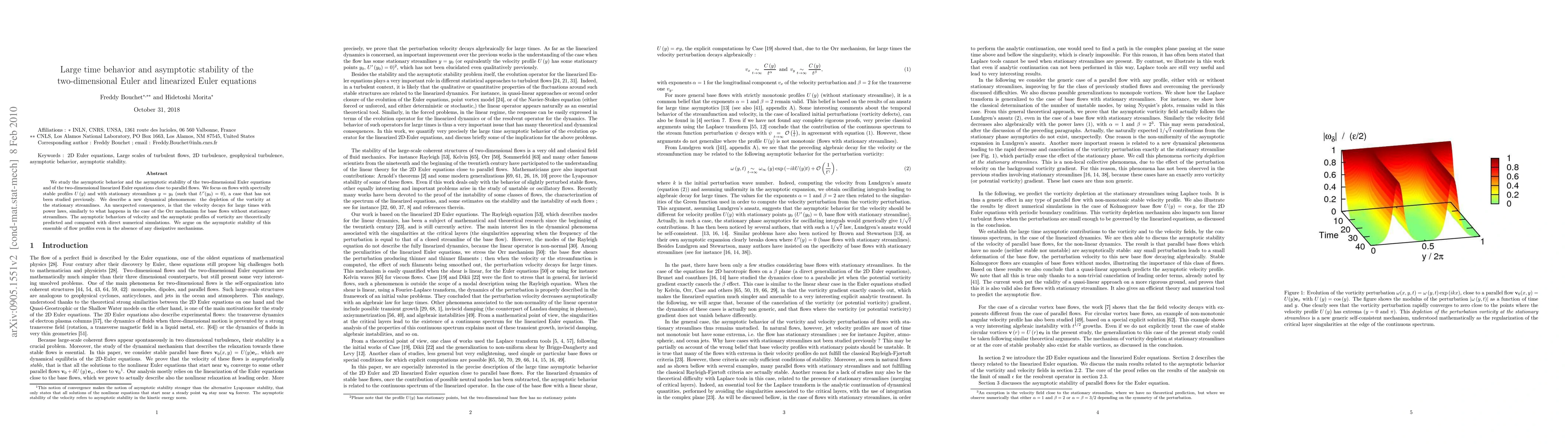 Researchers study the large-time behavior of the two-dimensional Euler equations near parallel flows, discovering that vorticity depletes at stationary streamlines, leading to velocity decay with power laws over time.