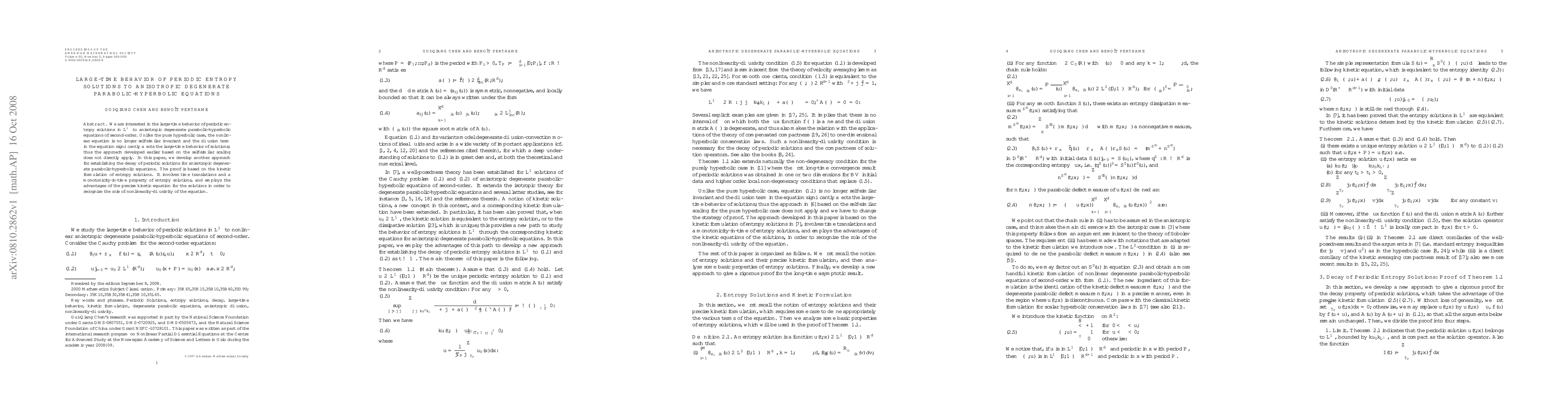 The novelty of this work lies in the development of a new approach for proving decay properties of periodic entropy solutions, leveraging the kinetic formulation and precise identification of defect measures, which is not covered by previous research on isotropic or purely hyperbolic cases.