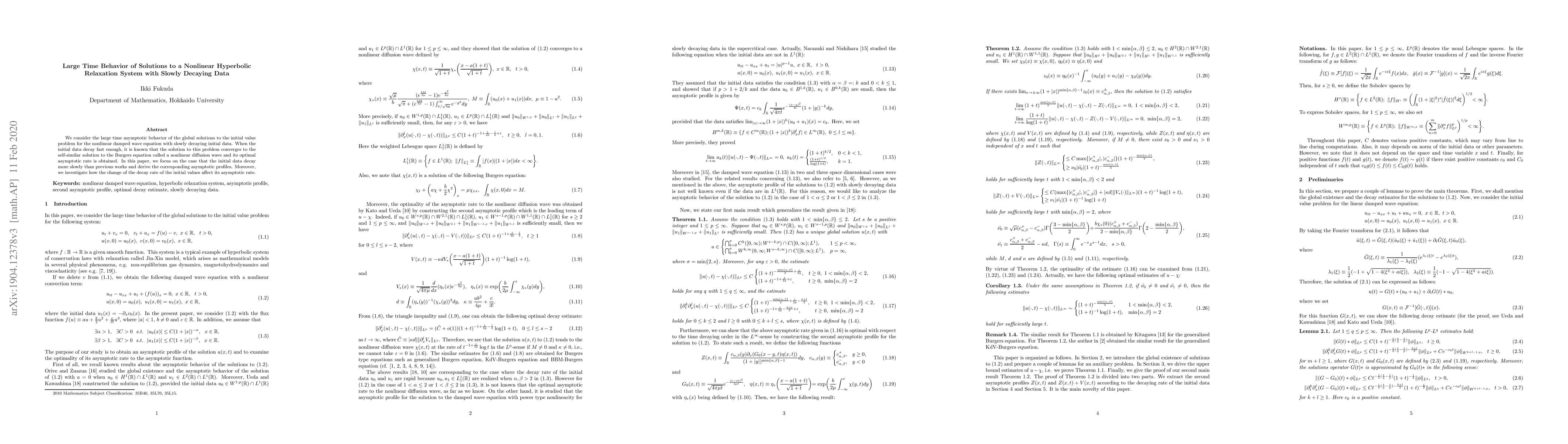 This paper studies the large time behavior of solutions to a nonlinear hyperbolic relaxation system with slowly decaying initial data, deriving new asymptotic profiles and analyzing how the slower decay rate of initial values impacts the asymptotic rate of convergence.