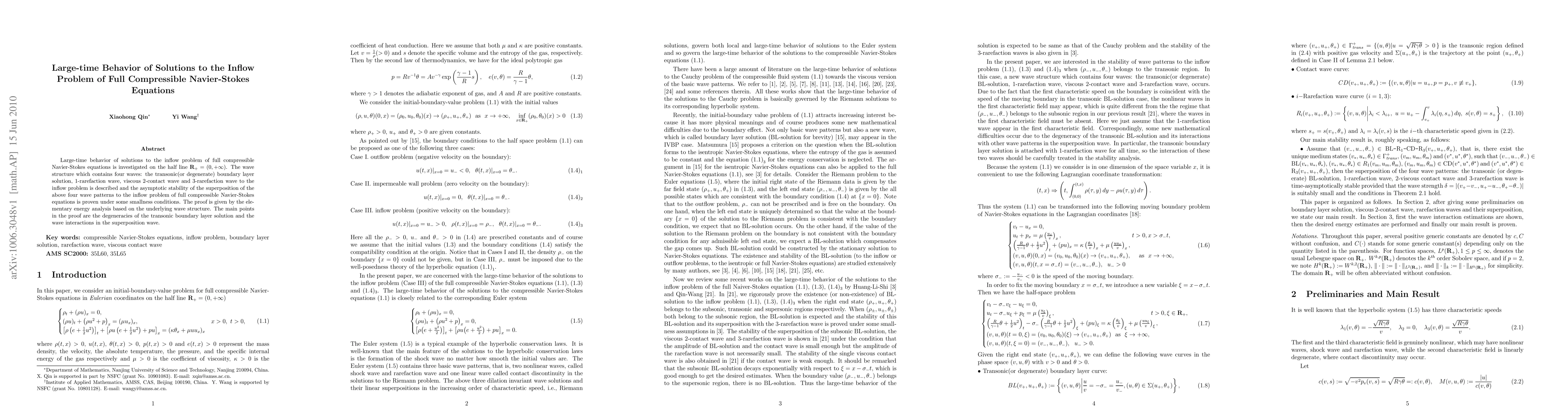 This paper investigates the long-term behavior of solutions to the inflow problem of compressible Navier-Stokes equations on the half line, describing a wave structure comprising four waves and proving their asymptotic stability under smallness conditions using elementary energy analysis. The proof hinges on the degeneracies of the transonic boundary layer and wave interactions.
