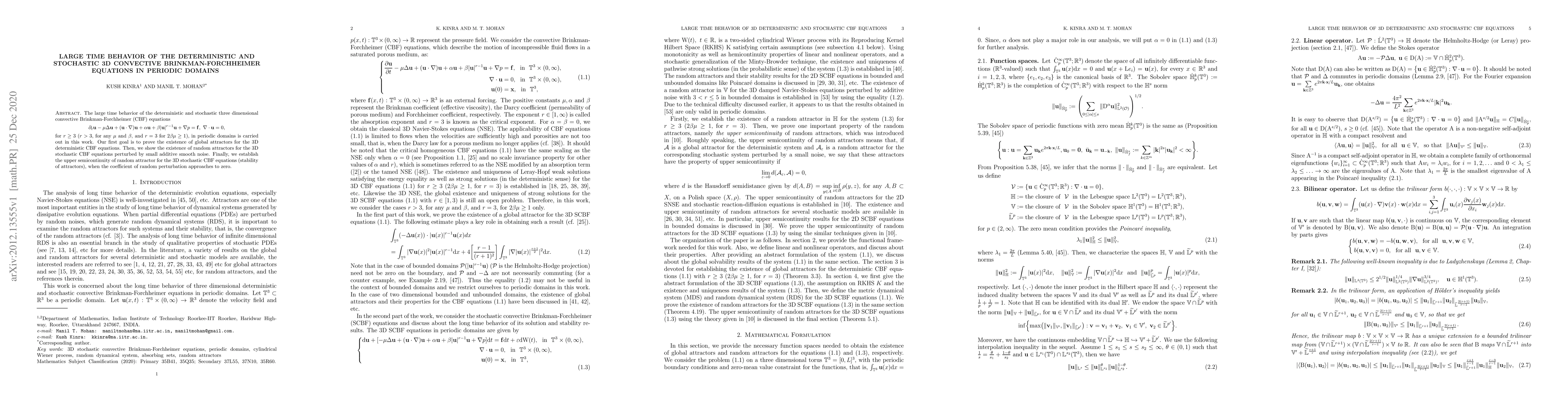 The large time behavior of the deterministic and stochastic three dimensional convective Brinkman-Forchheimer (CBF) equations for $r\geq3$ ($r>3$, for any $\mu$ and $\beta$, and $r=3$ for $2\beta\mu\geq1$), in periodic domains is carried out in this work. Our first goal is to prove the existence of global attractors for the 3D deterministic CBF equations. Then, we show the existence of random attractors for the 3D stochastic CBF equations perturbed by small additive smooth noise. Finally, we establish the upper semicontinuity of random attractor for the 3D stochastic CBF equations (stability of attractors), when the coefficient of random perturbation approaches to zero.