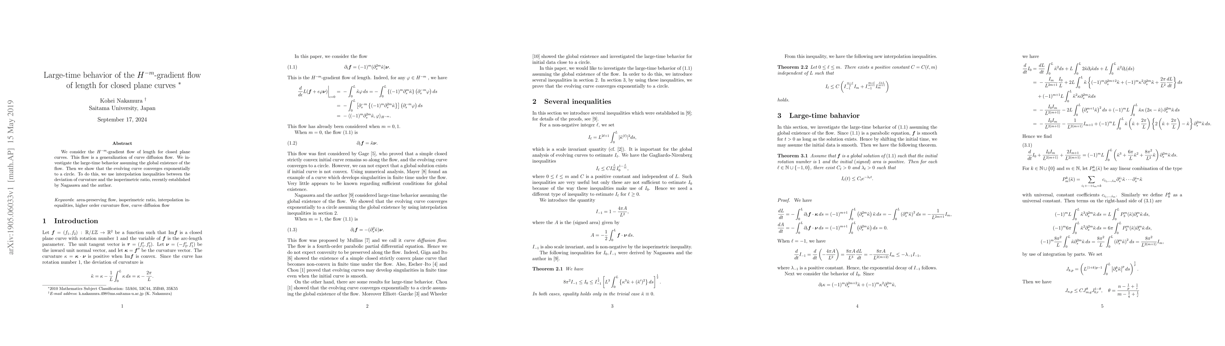 We consider the $H^{-m}$-gradient flow of length for closed plane curves. This flow is a generalization of curve diffusion flow. We investigate the large-time behavior assuming the global existence of the flow. Then we show that the evolving curve converges exponentially to a circle. To do this, we use interpolation inequalities between the deviation of curvature and the isoperimetric ratio, recently established by Nagasawa and the author.