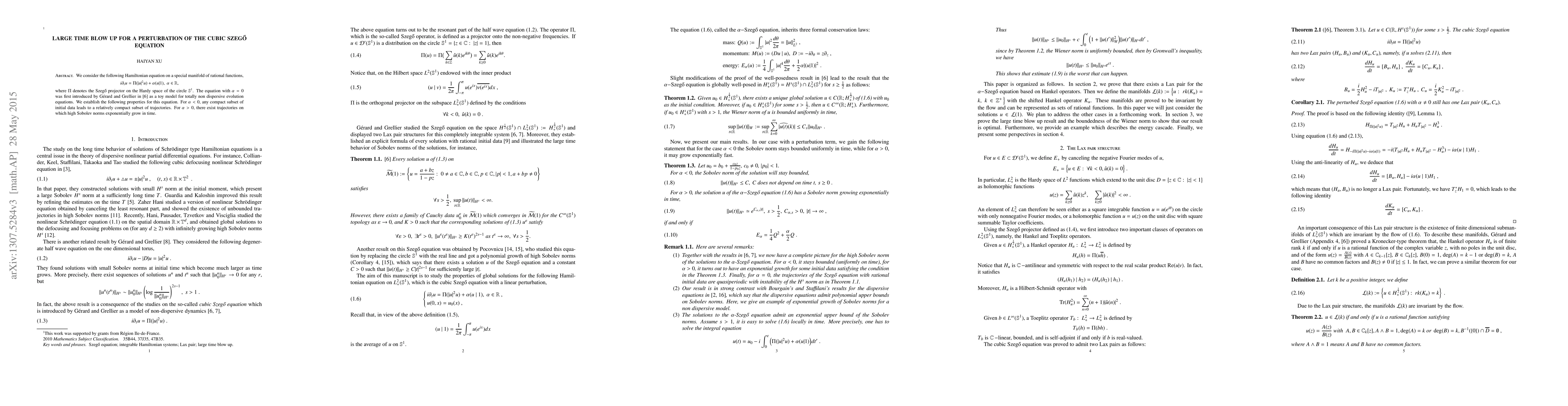 We consider the following Hamiltonian equation on a special manifold of rational functions, \[i\p\_tu=\Pi(|u|^2u)+\al (u|1),\ \al\in\R,\] where $\Pi $ denotes the Szeg\H{o} projector on the Hardy space of the circle $\SS^1$. The equation with $\al=0$ was first introduced by G{\'e}rard and Grellier in \cite{GG1} as a toy model for totally non dispersive evolution equations. We establish the following properties for this equation. For $\al\textless{}0$, any compact subset of initial data leads to a relatively compact subset of trajectories. For $\al\textgreater{}0$, there exist trajectories on which high Sobolev norms exponentially grow with time.