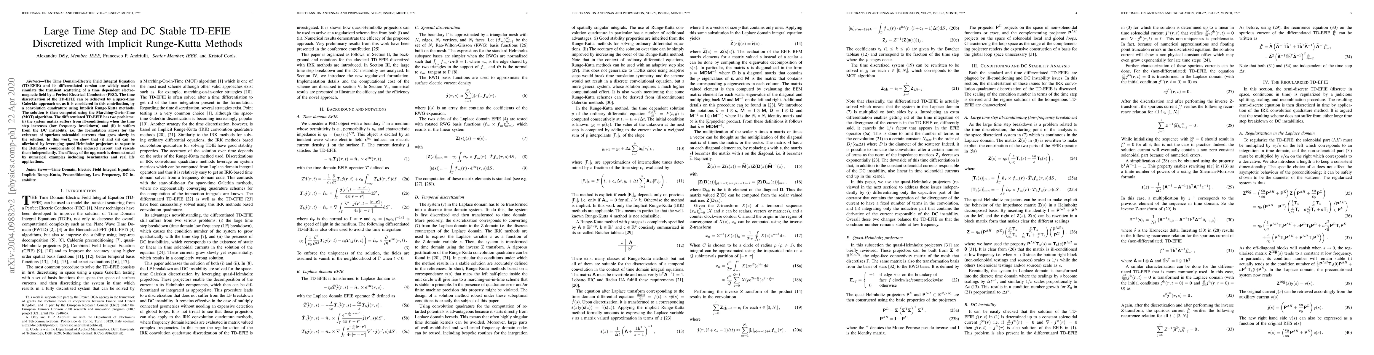 This paper proposes an implicit Runge-Kutta method for discretizing the Time Domain-Electric Field Integral Equation (TD-EFIE) to simulate transient electromagnetic scattering by Perfect Electrical Conductors. The method addresses ill-conditioning and DC instability issues through the use of quasi-Helmholtz projectors to manage the induced current components.
