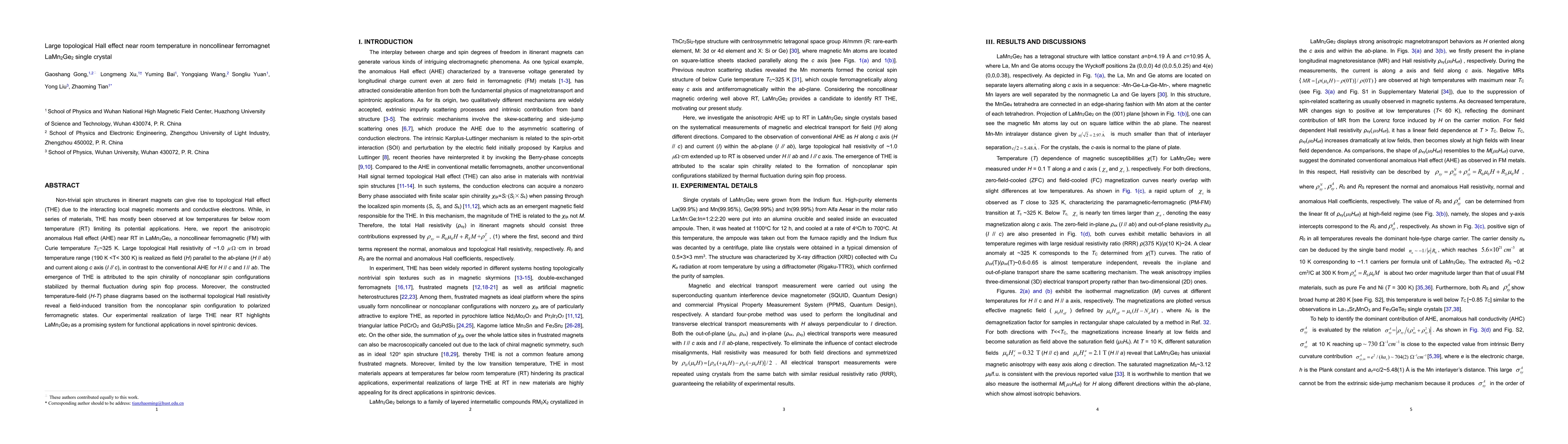 K. Large topological Hall resistivity of ~1.0 10-6 ohmcm in broad temperature