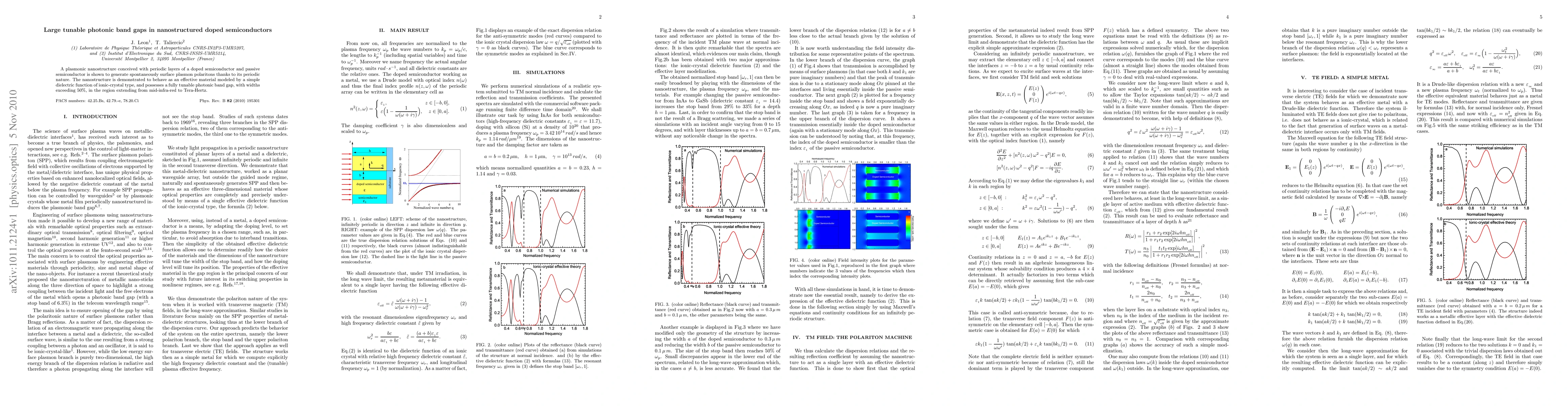 This research demonstrates a plasmonic nanostructure with periodic layers of doped and passive semiconductors that generates surface plasmon polaritons, exhibiting a tunable photonic band gap exceeding 50% from mid-infra-red to Tera-Hertz frequencies. The structure is modeled as an ionic-crystal type effective material.