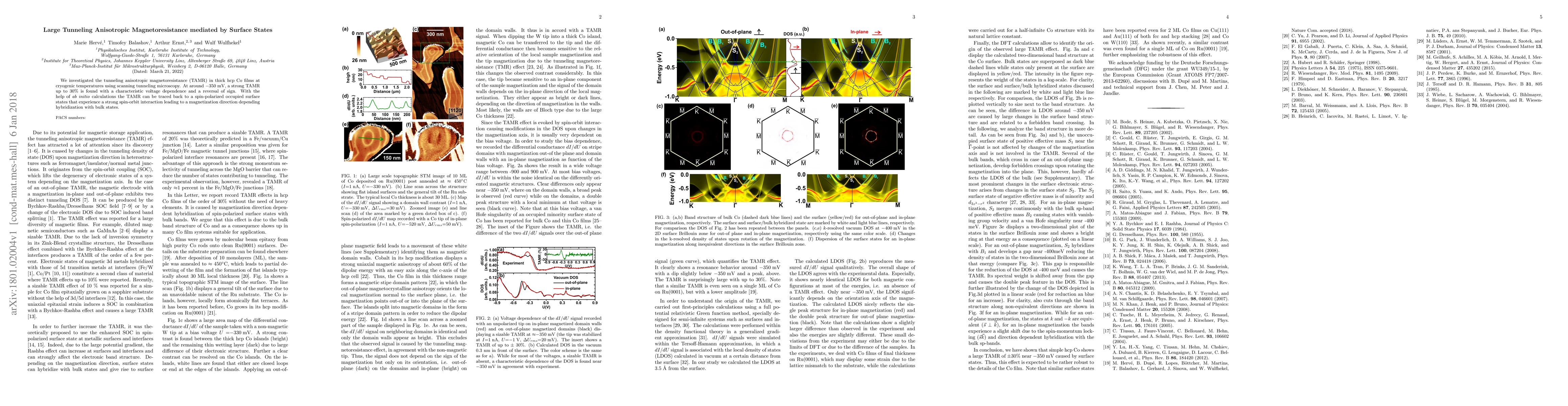 This study reveals a large tunneling anisotropic magnetoresistance (TAMR) in thick hexagonal close-packed cobalt films, with a peak TAMR of up to 30% at cryogenic temperatures, attributed to spin-polarized surface states influenced by strong spin-orbit coupling.